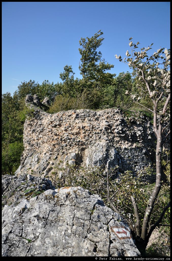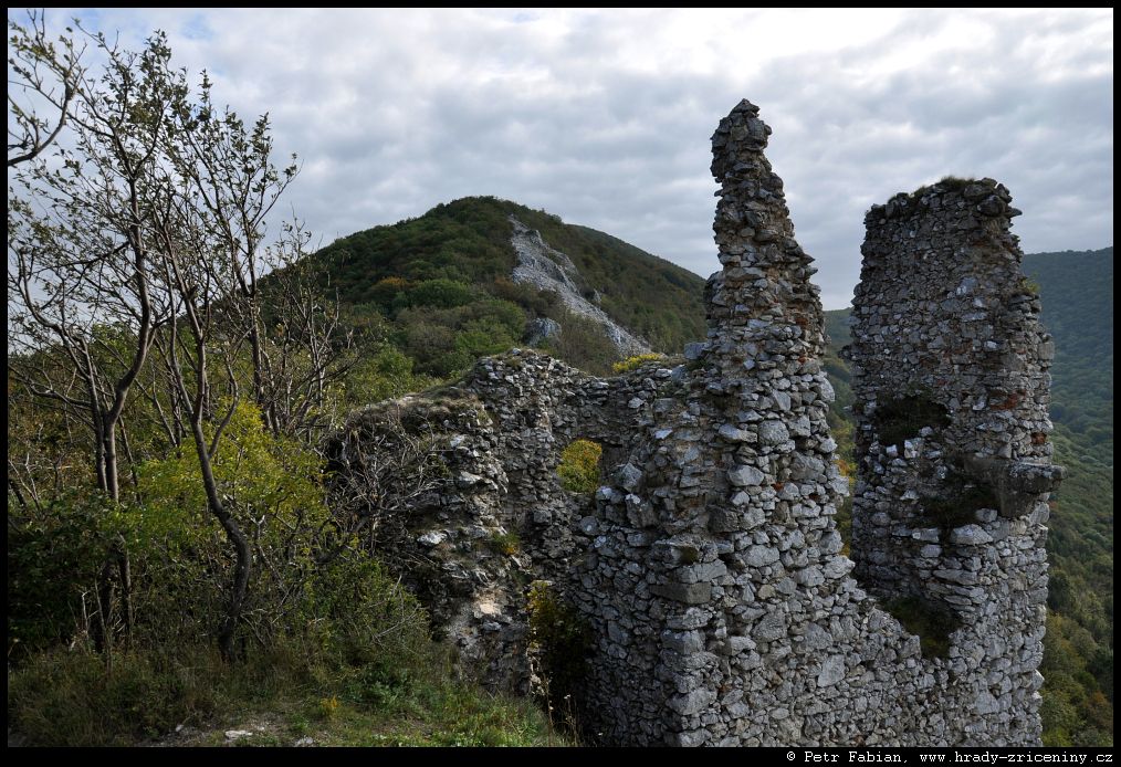 Ostrý Kameň části hradu zarostlé lesem (2023) |
