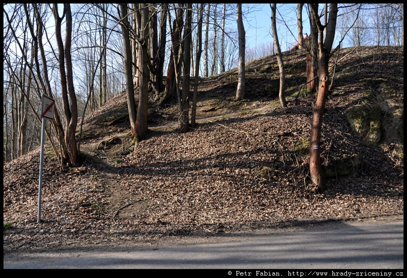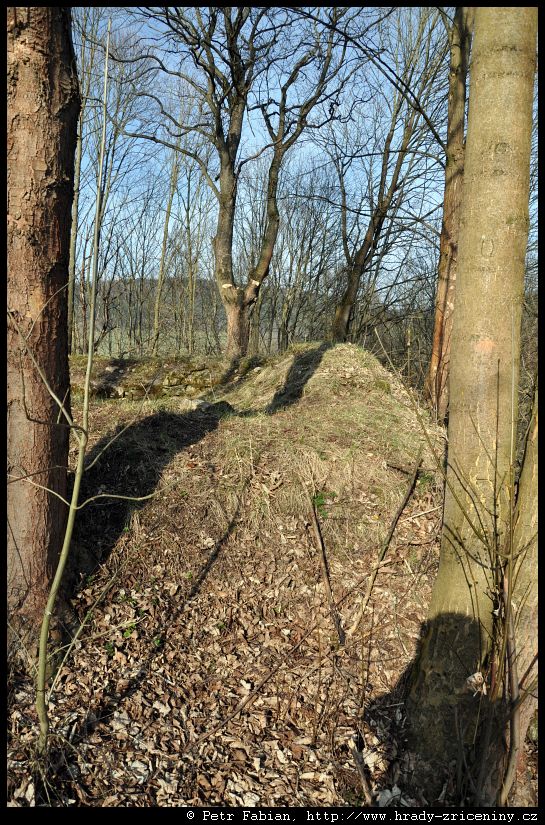 Boršengrýn bývalý příkop mezi jádrem (vlevo) a předhradím (2015) |