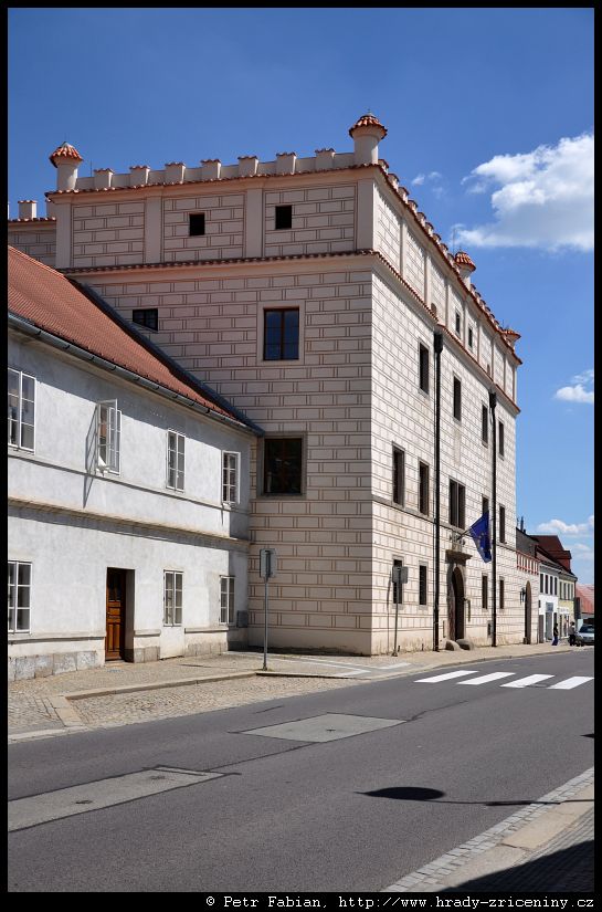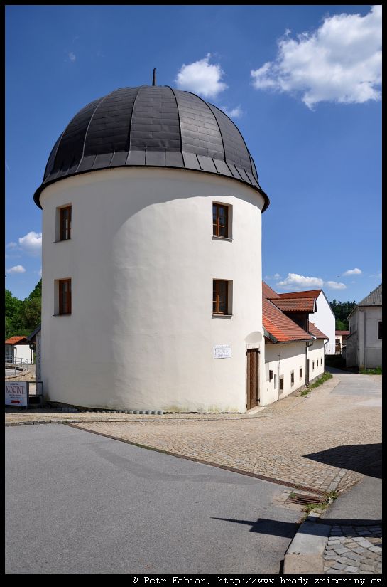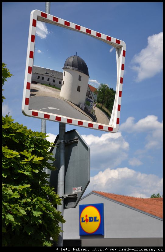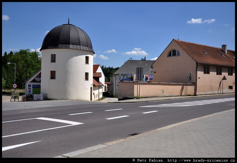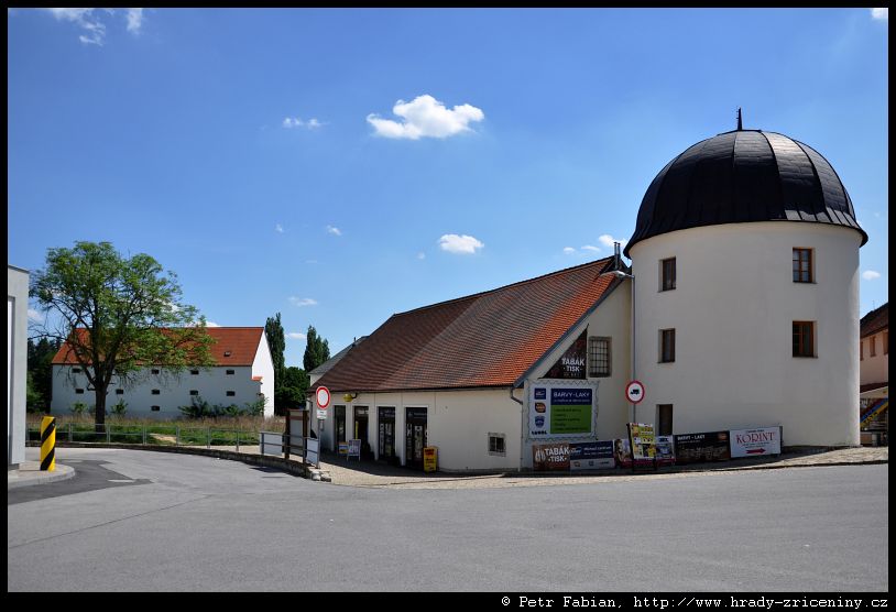 Dačice tvrz, v pozadí Starý zámek (2017) |
