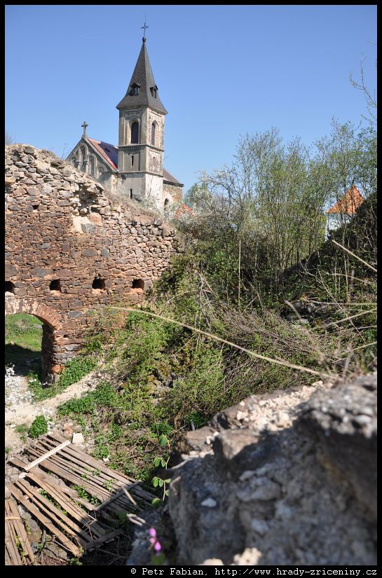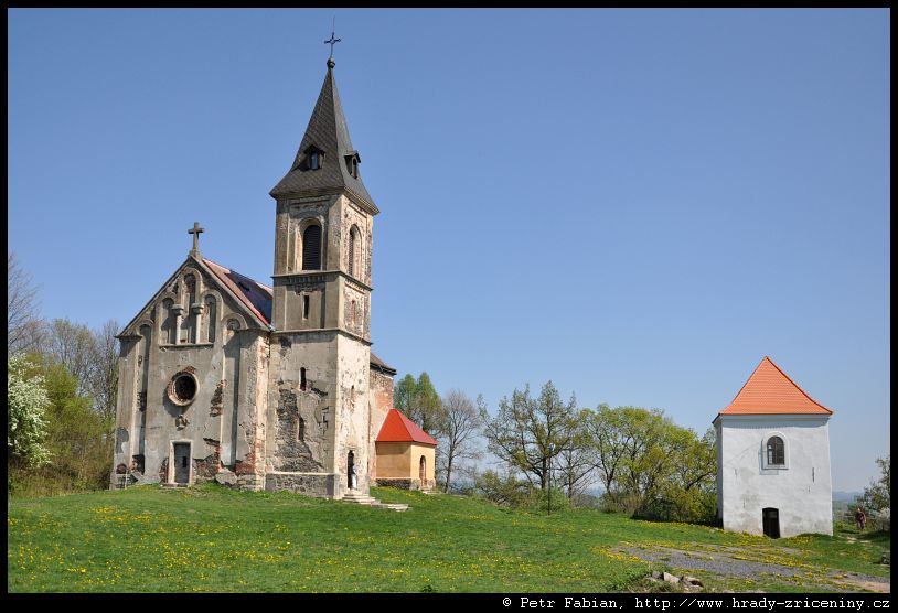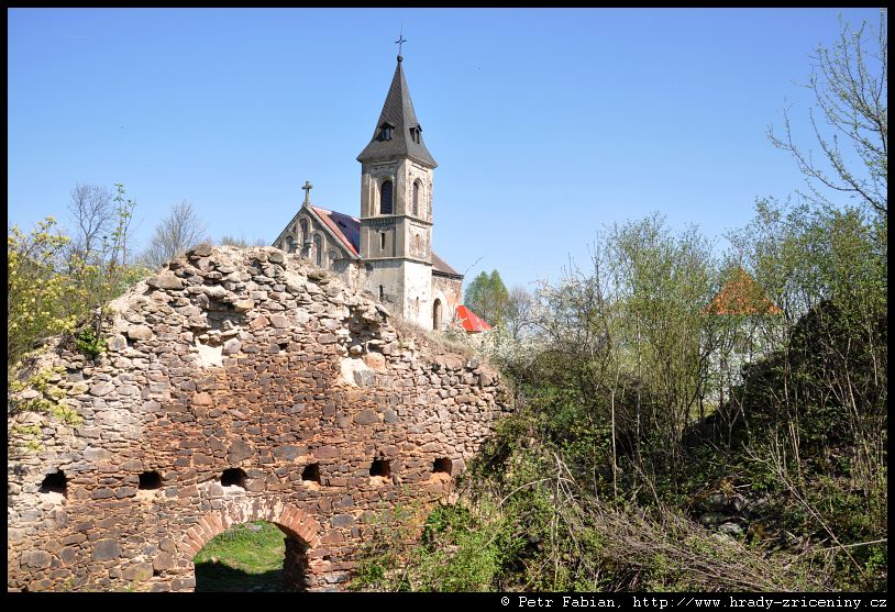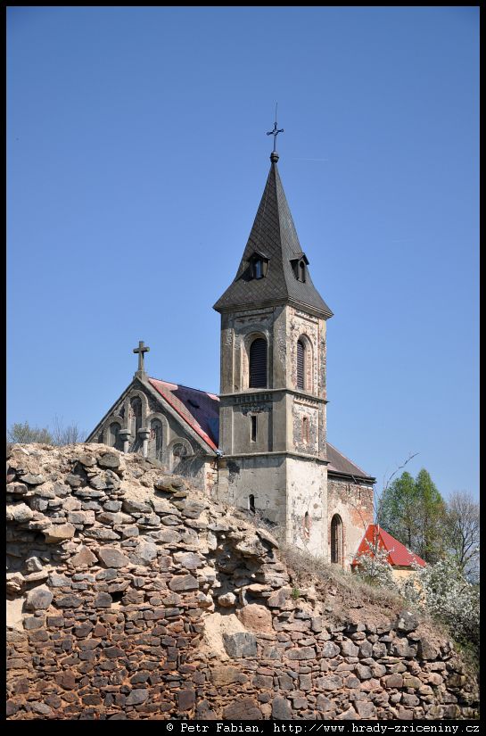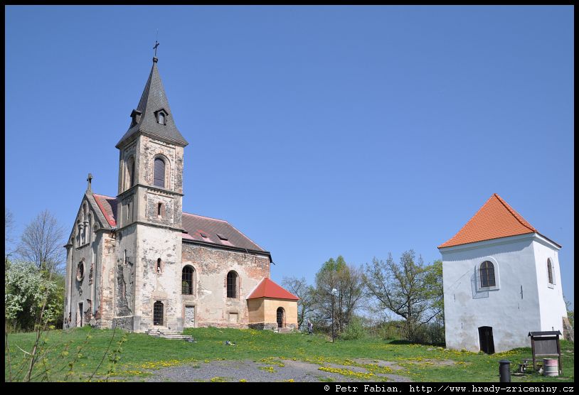 Krasíkov Švamberk kaple sv. Máří Magdaleny, v pozadí jádro hradu (2018) |