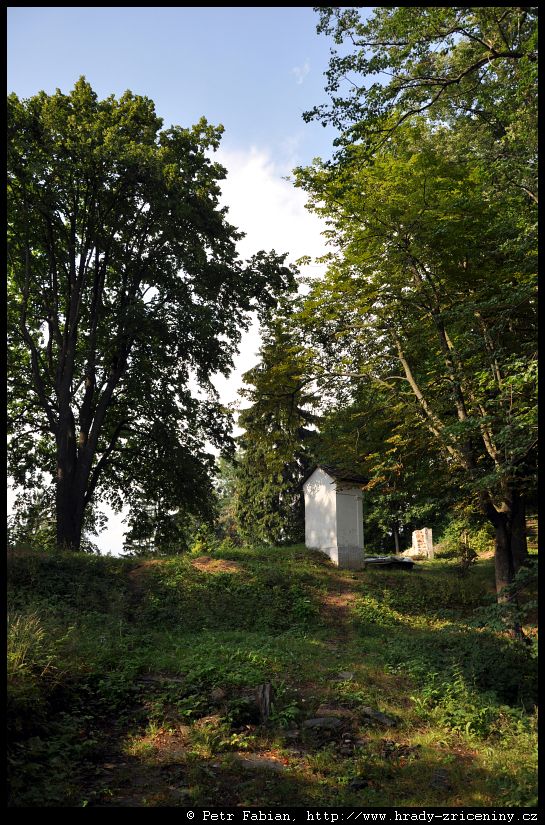 Moravský Beroun tesaný prostor ve skále na vrcholu a kaple (2014) |