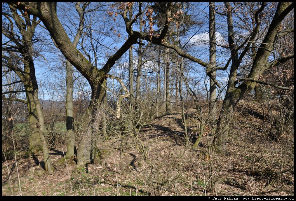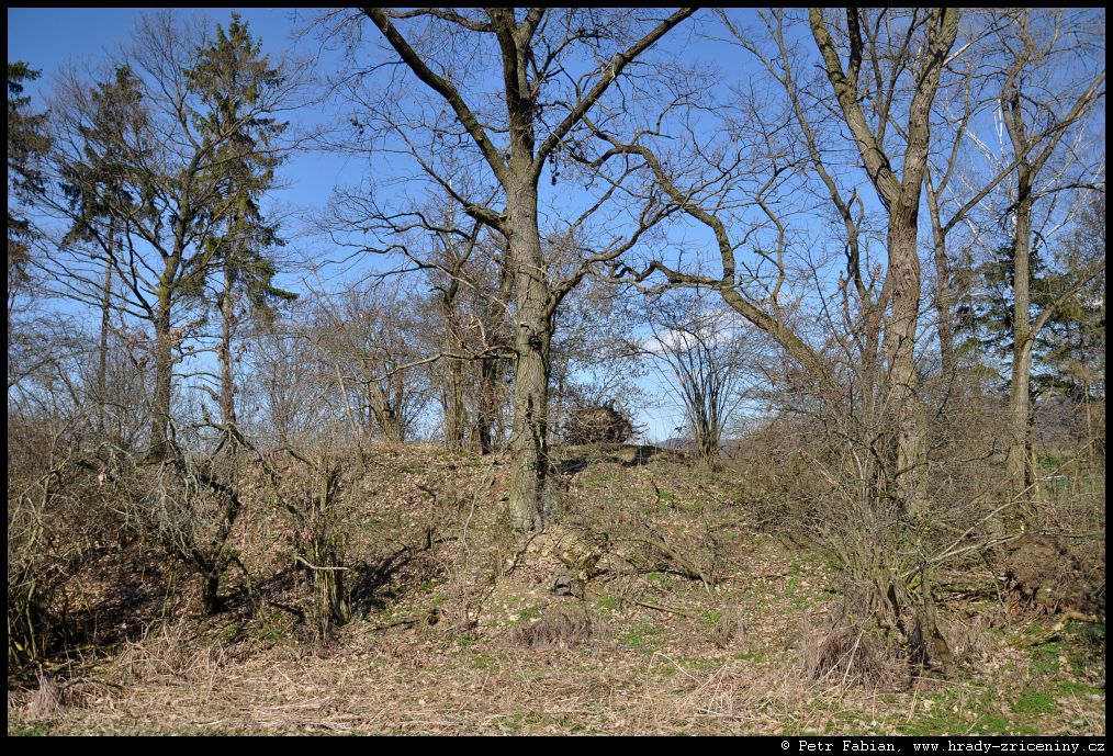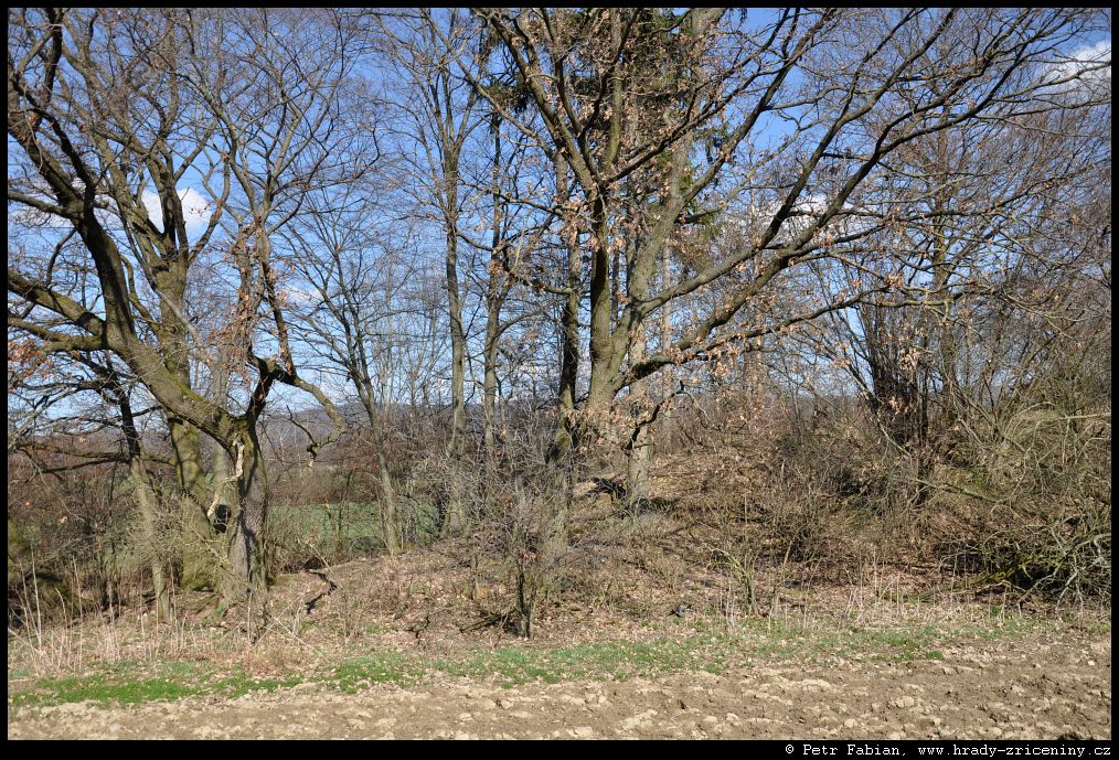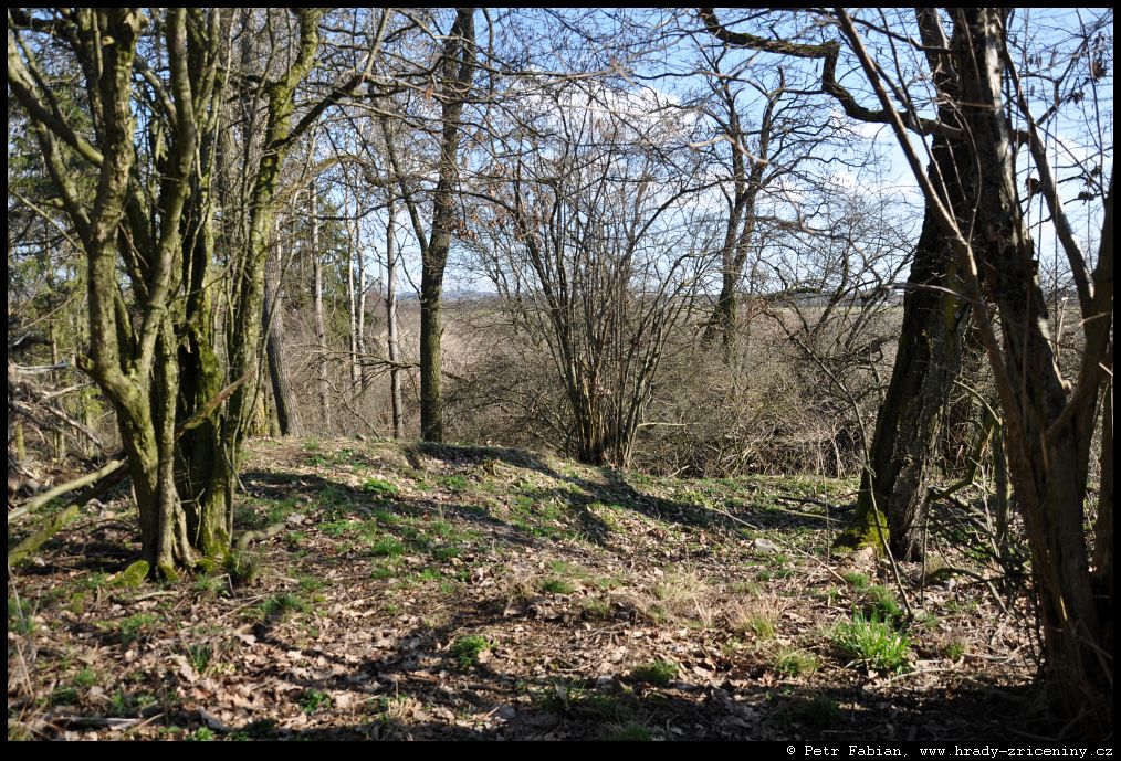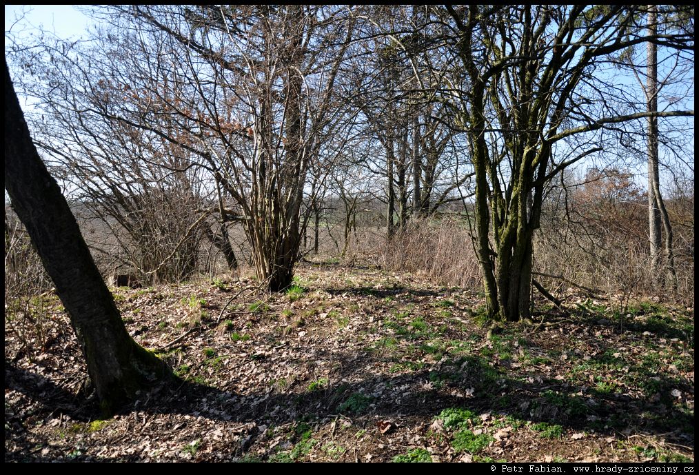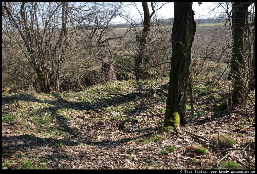 Otěhřiby pohled podél jižní strany tvrziště k východu (2024) |