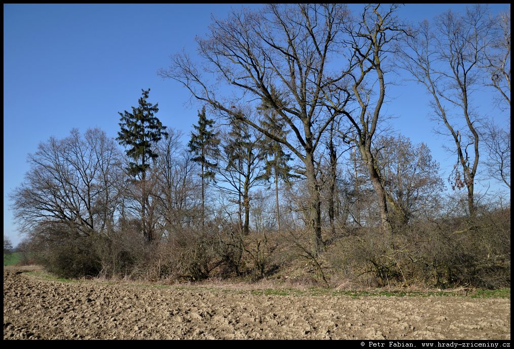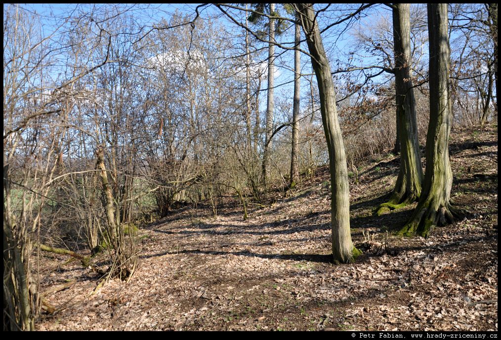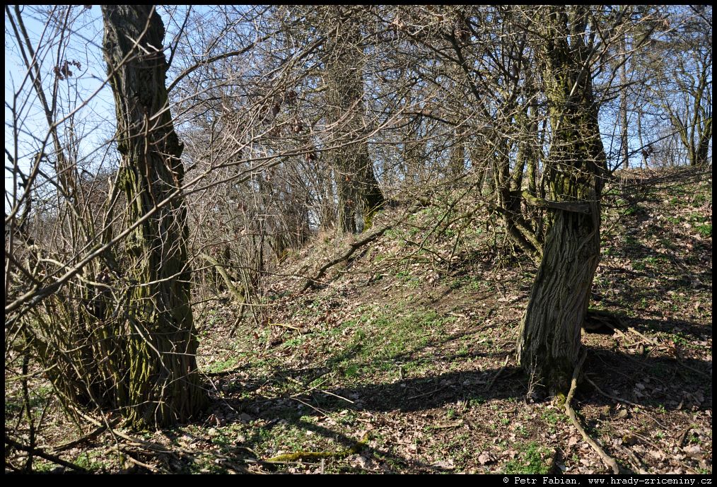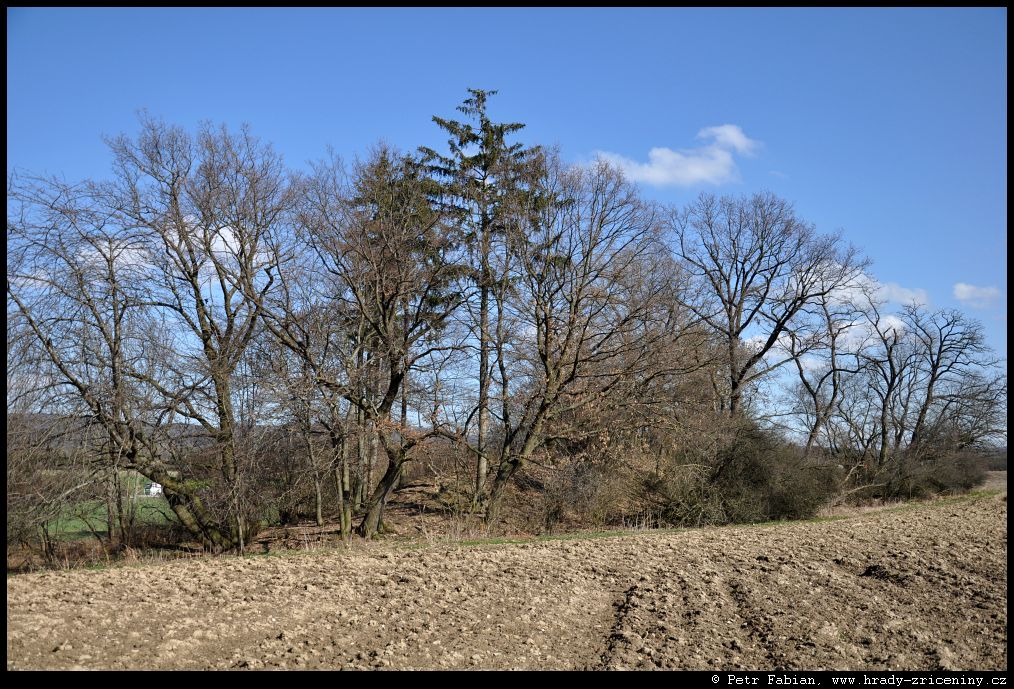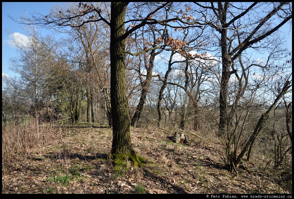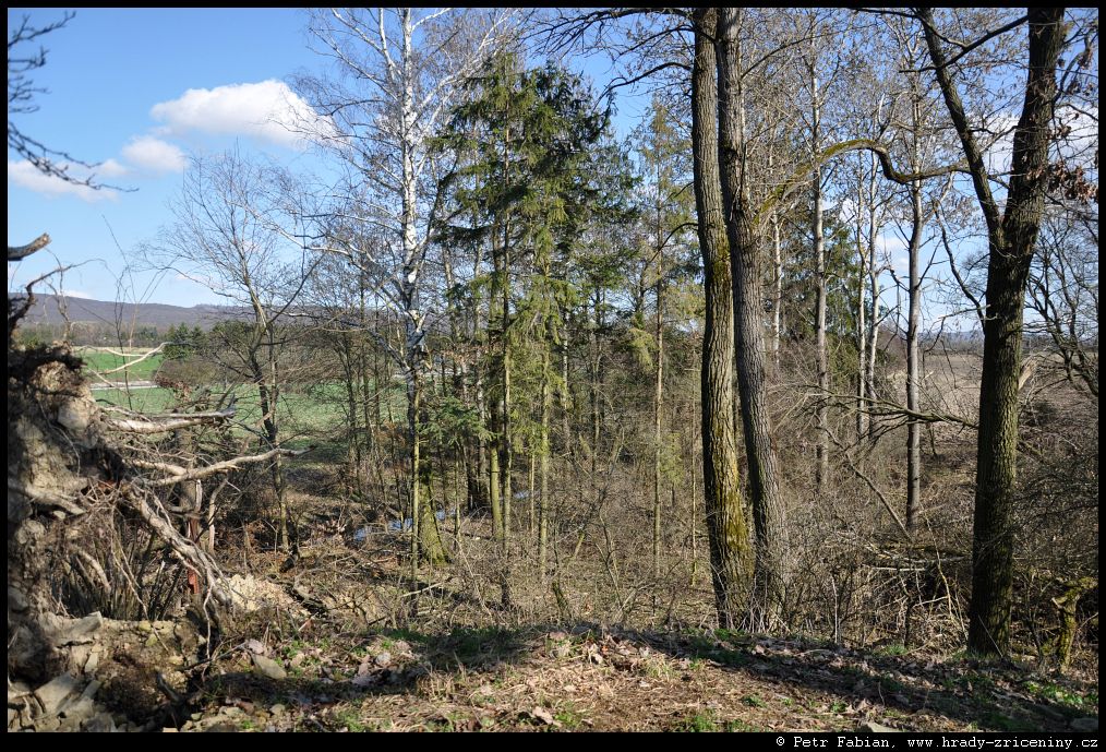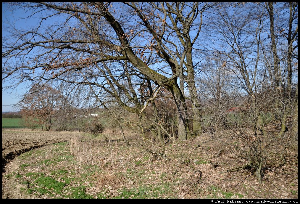 Otěhřiby pohled podél jižní strany tvrziště k východu (2024) |