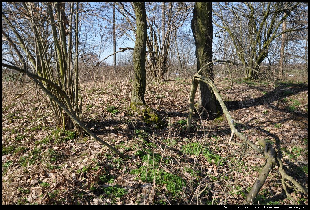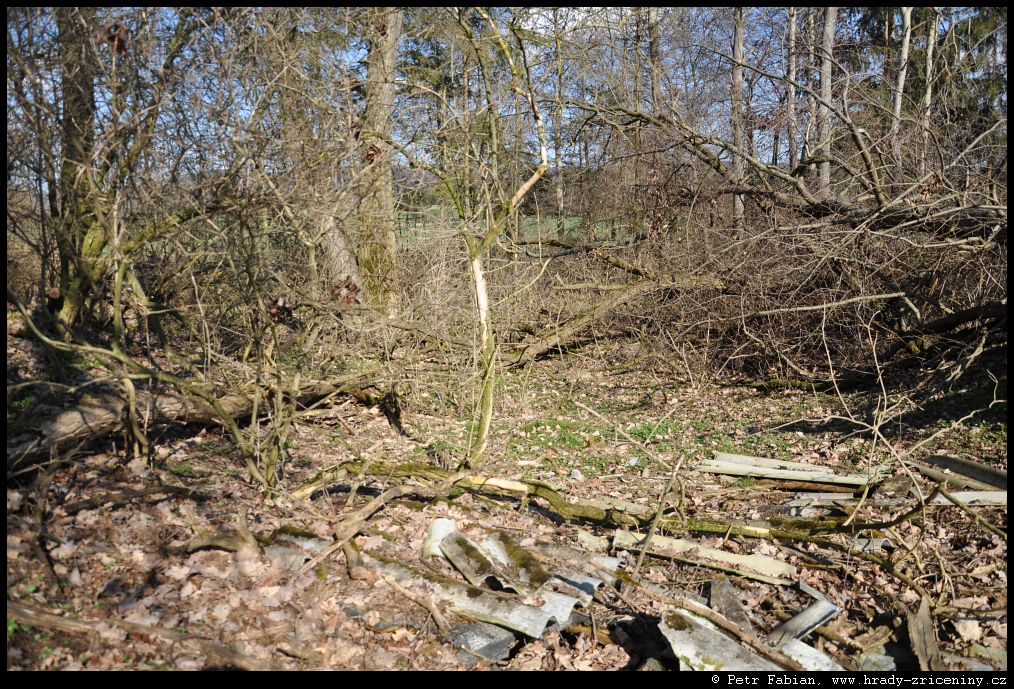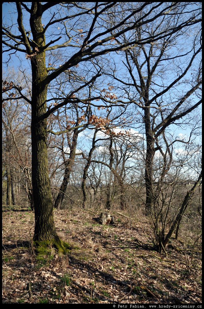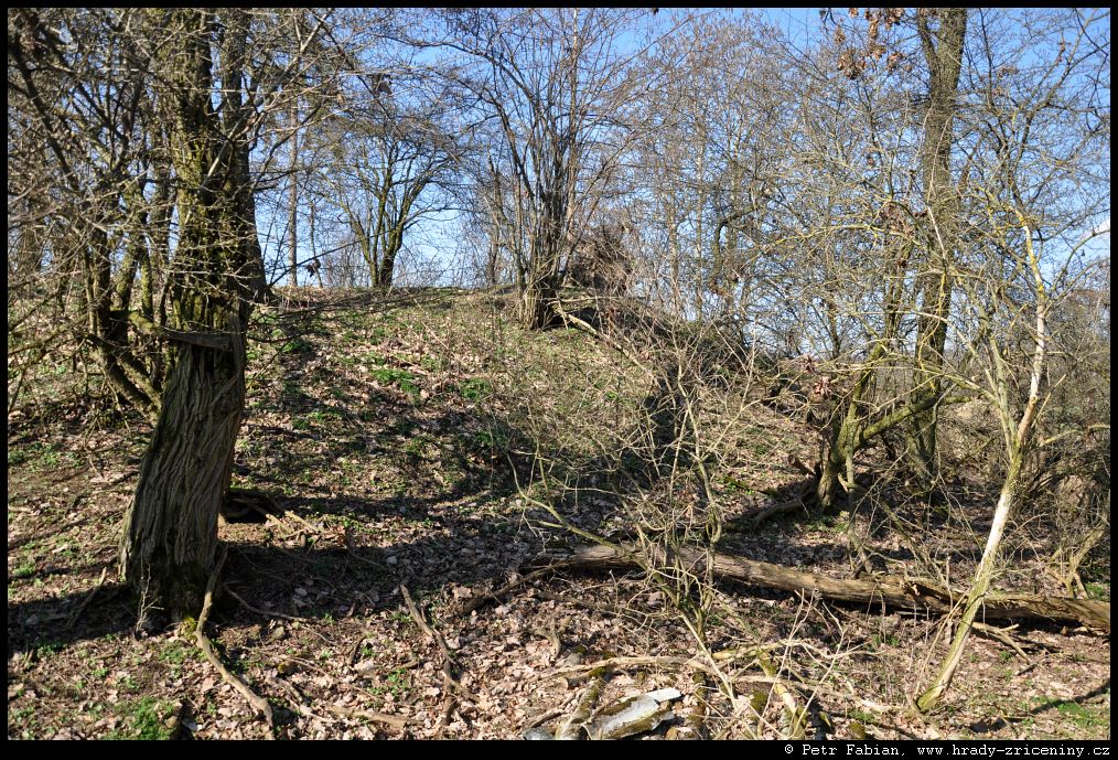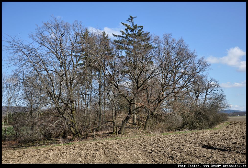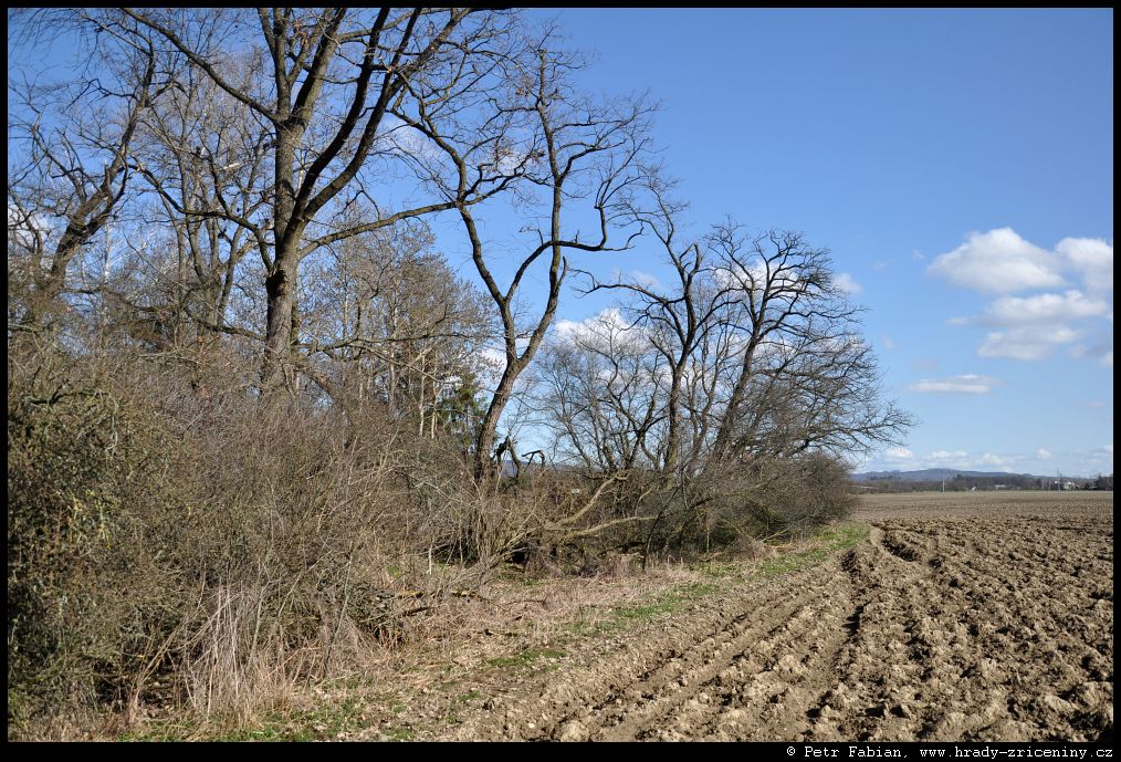 Otěhřiby pohled podél jižní strany tvrziště k východu (2024) |