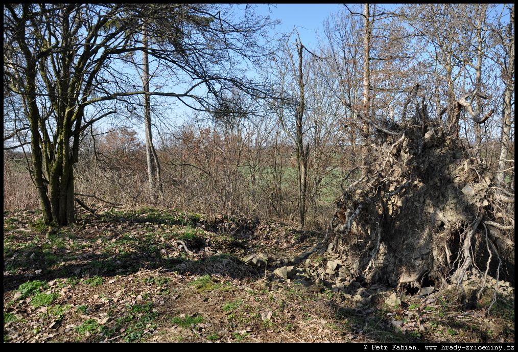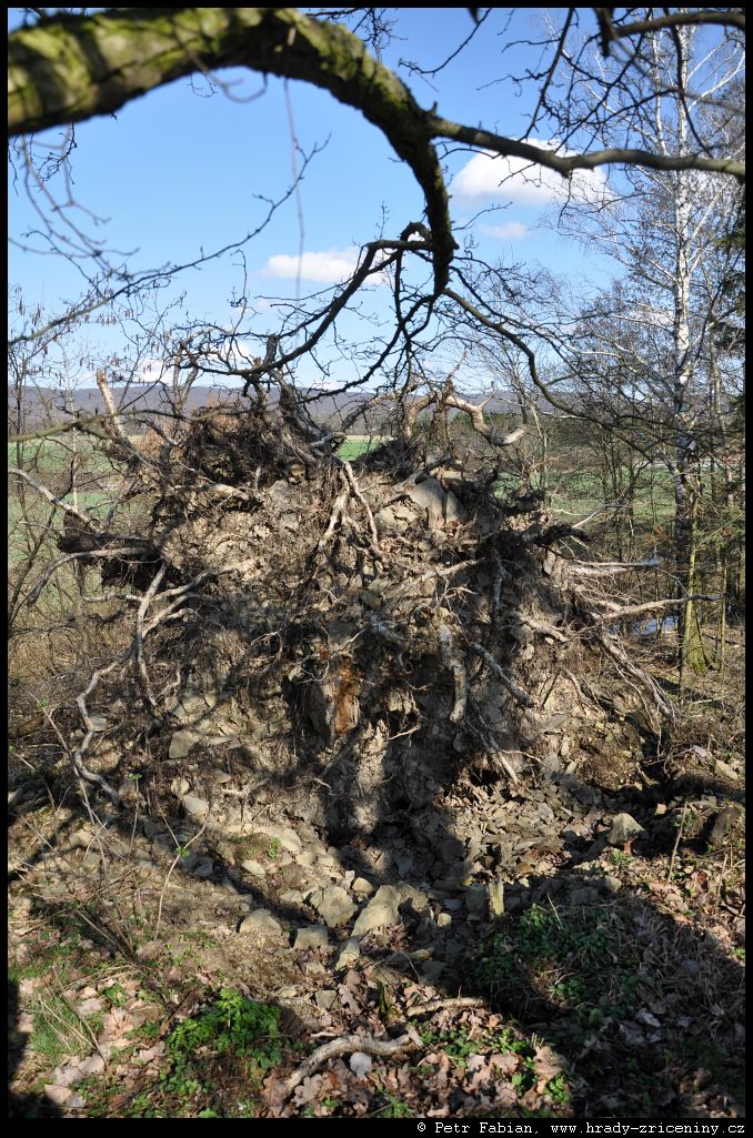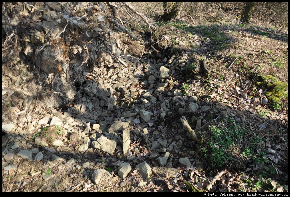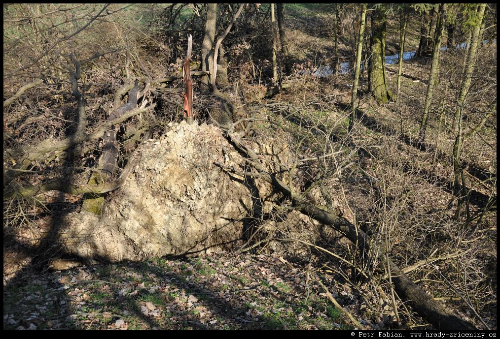 Otěhřiby kamenná suť pod vývratem na okraji tvrziště (2024) |