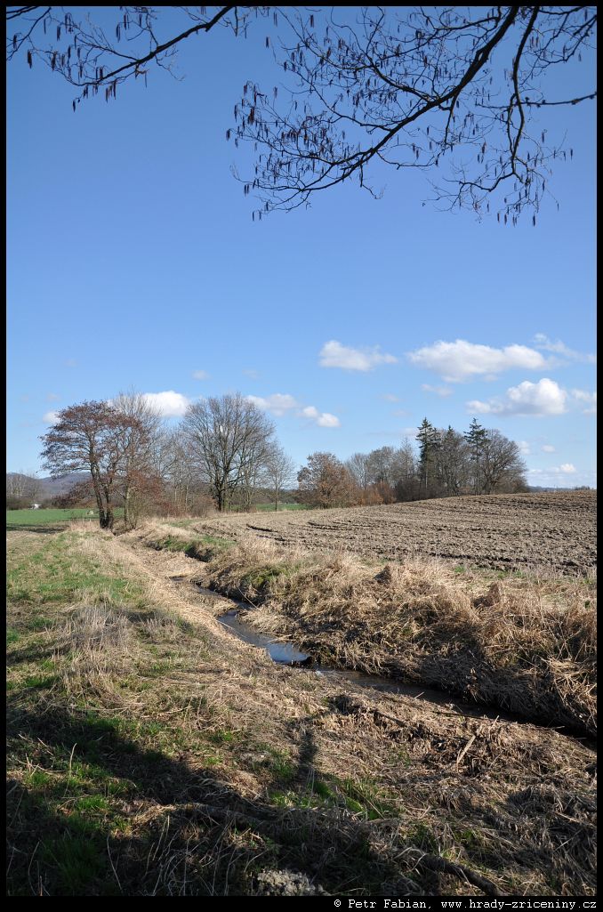 Otěhřiby pohled z okraje tvrziště k SV (2024) |