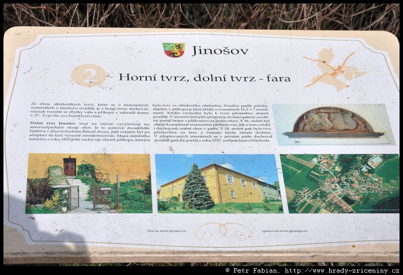 Jinošov informační tabule se záměnou dolní a horní tvrze (2016) |