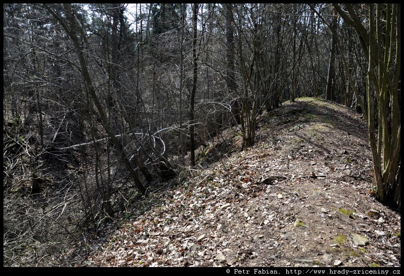 Mrač reliéf starší tvrze, vlevo příkop (2016) |