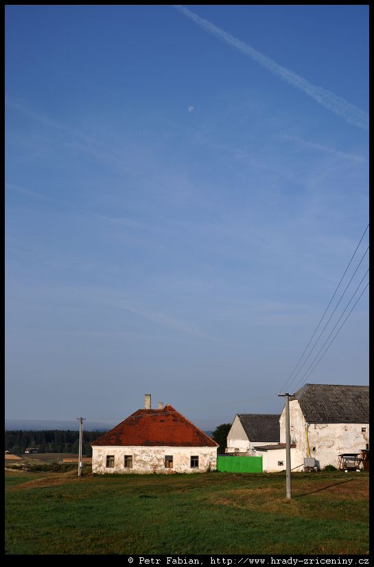 Dolní Hořice pohled od tvrziště k hospodářskému dvoru s tvrzí (2018) |