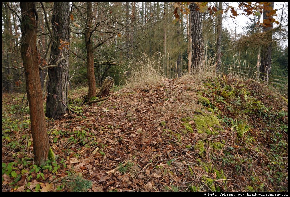 Čimelice tvrz s valem a příkopem na severní straně (2020) |