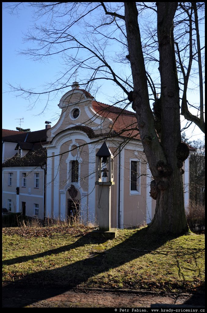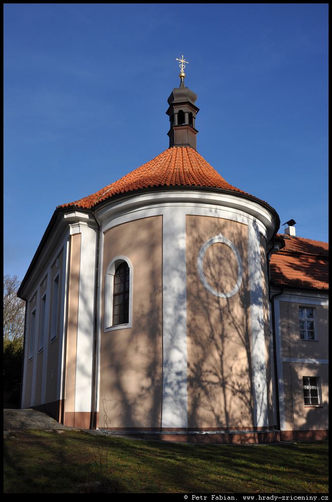Ostředek zámecká kaple od hlavního vstupu (2020) |