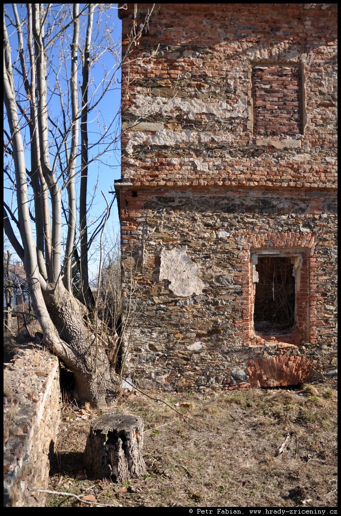Nový hrad Klečkov dolní hrad zdivo v havarijním stavu (2022) |