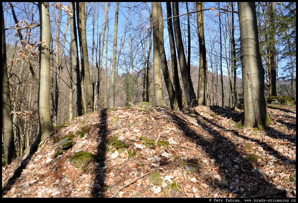 Červený Hrádek reliéf naznačující, že zde stálo opevněné sídlo (2022) |