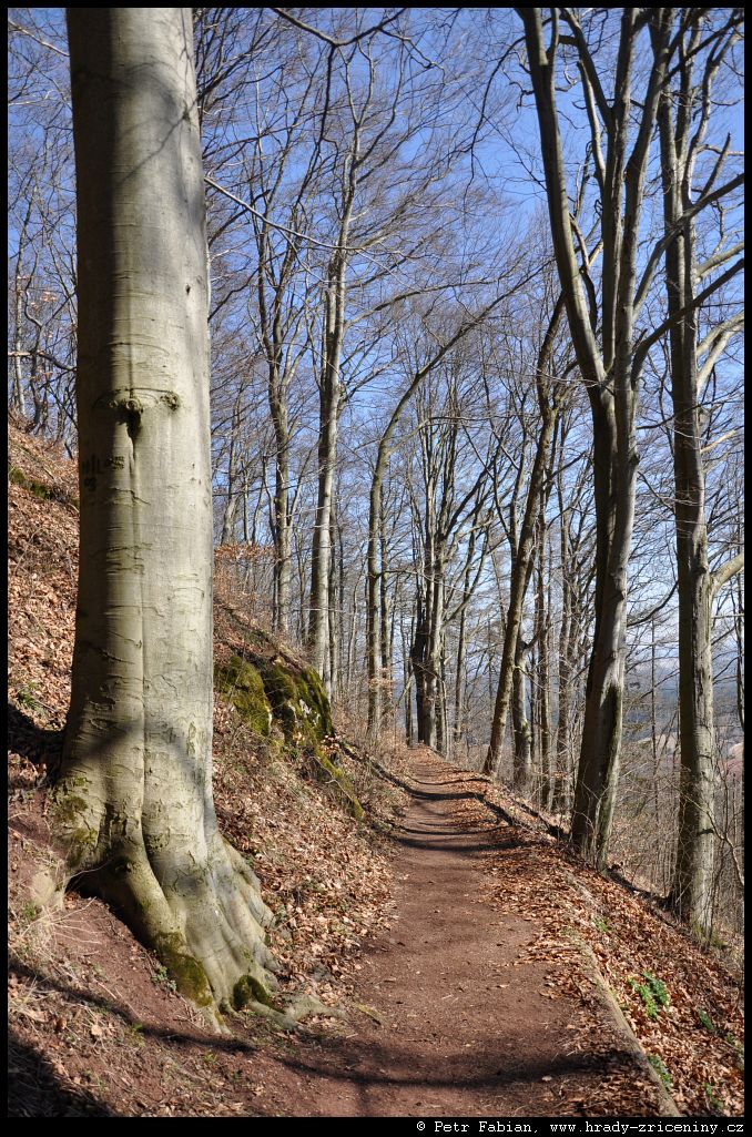 Nový hrad Klečkov pohled na stoupající terén nad hradem (2022) |