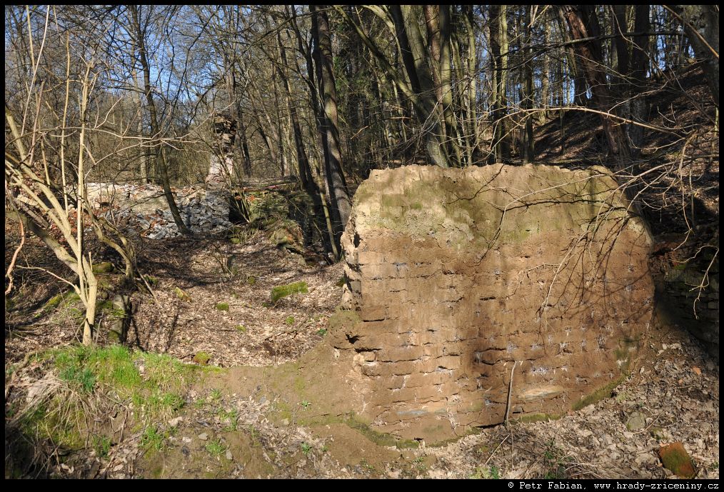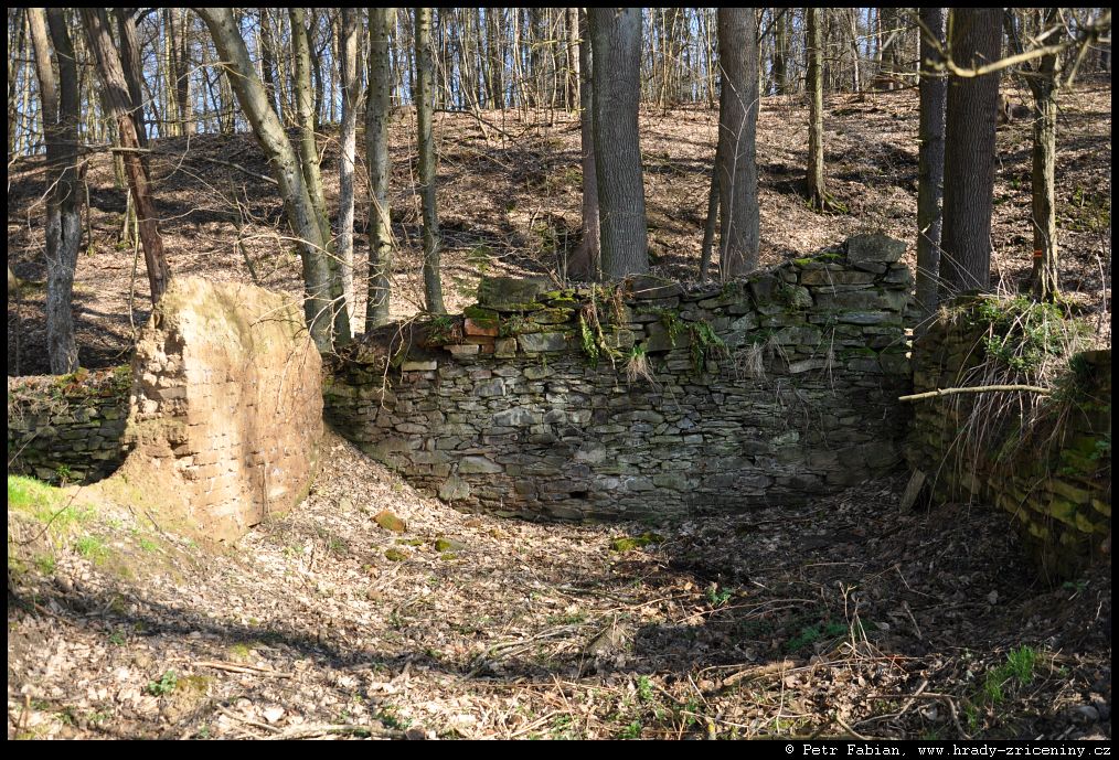 Daskabát pohled z okraje tvrziště do příkopu (2024) |