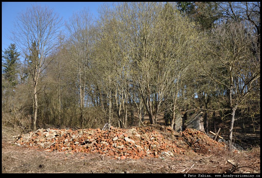 Otěhřiby kamenná suť pod vývratem na okraji tvrziště (2024) |