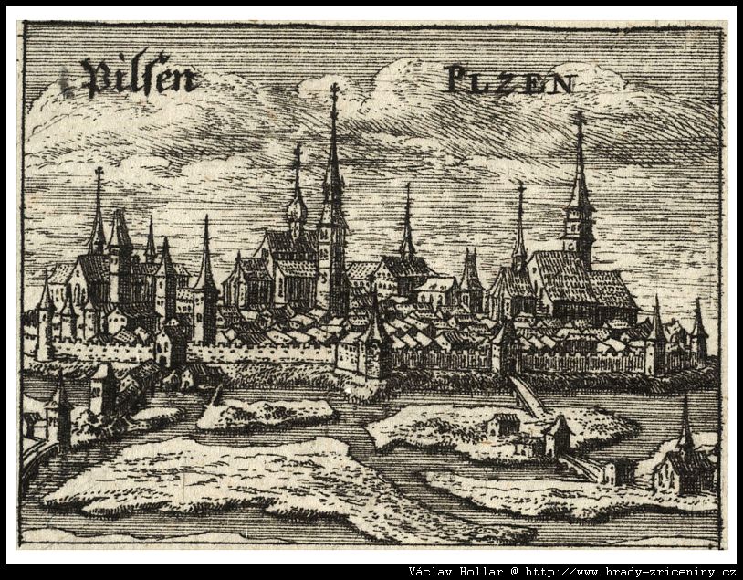 Plzeň rytina ze 17. stol. připisovaná Václavu Hollarovi