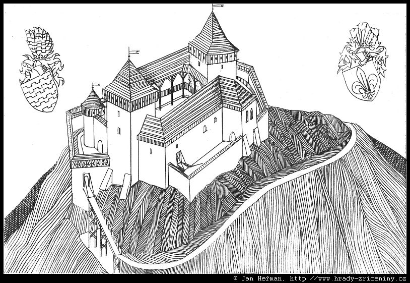 Buchlov – kresby Jana Heřmana podle rekonstrukcí