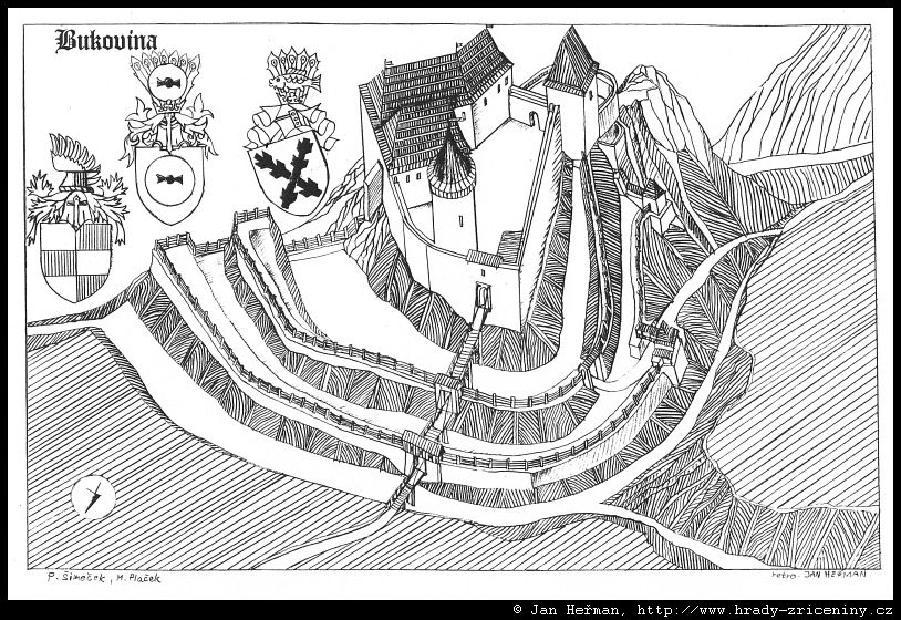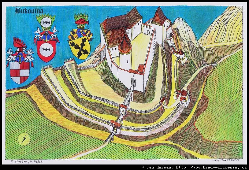 Bukovina – Starý zámek – kresby Jana Heřmana podle rekonstrukcí