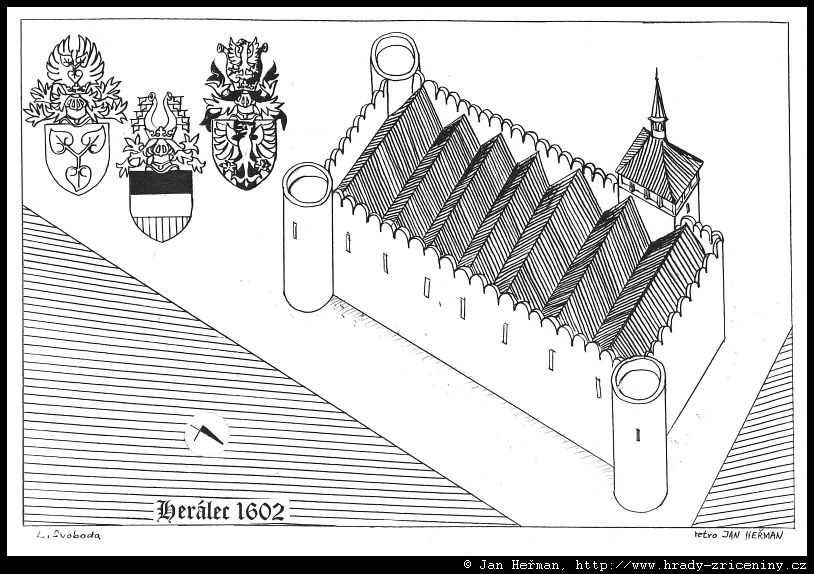 Herálec kresby Jana Heřmana podle rekonstrukcí