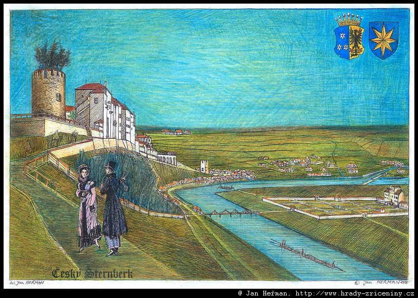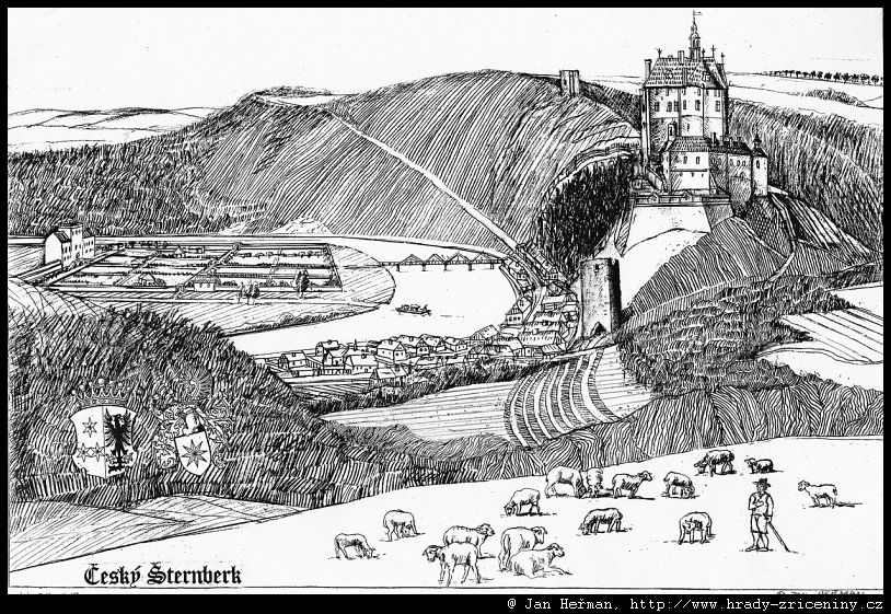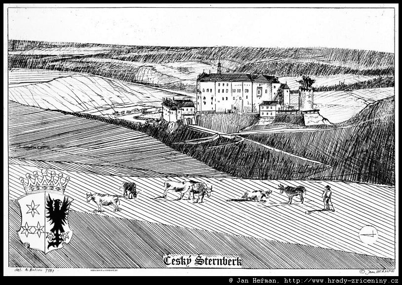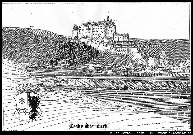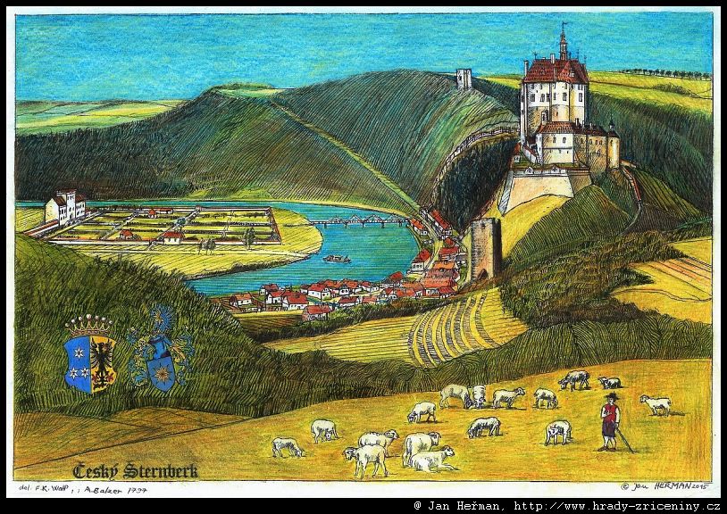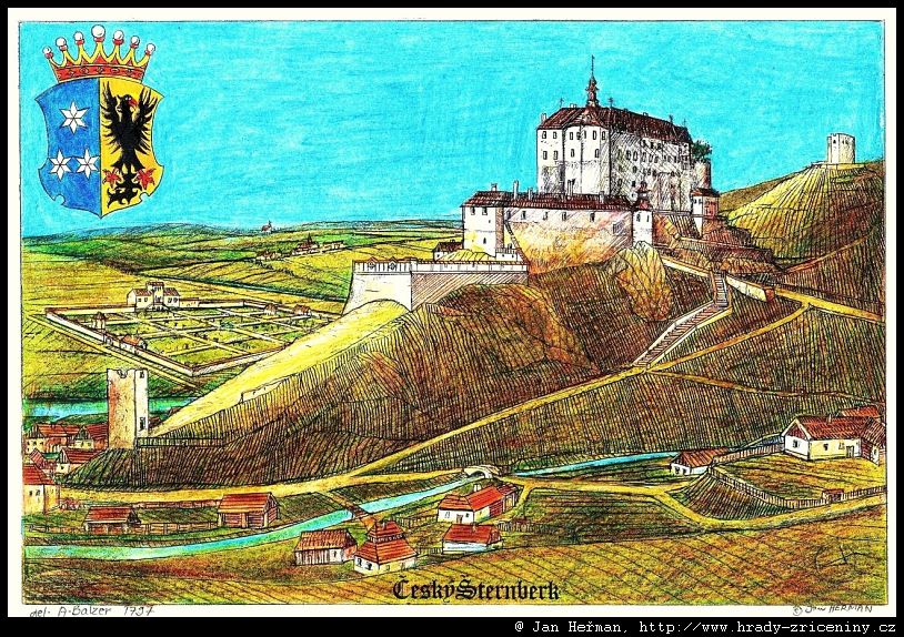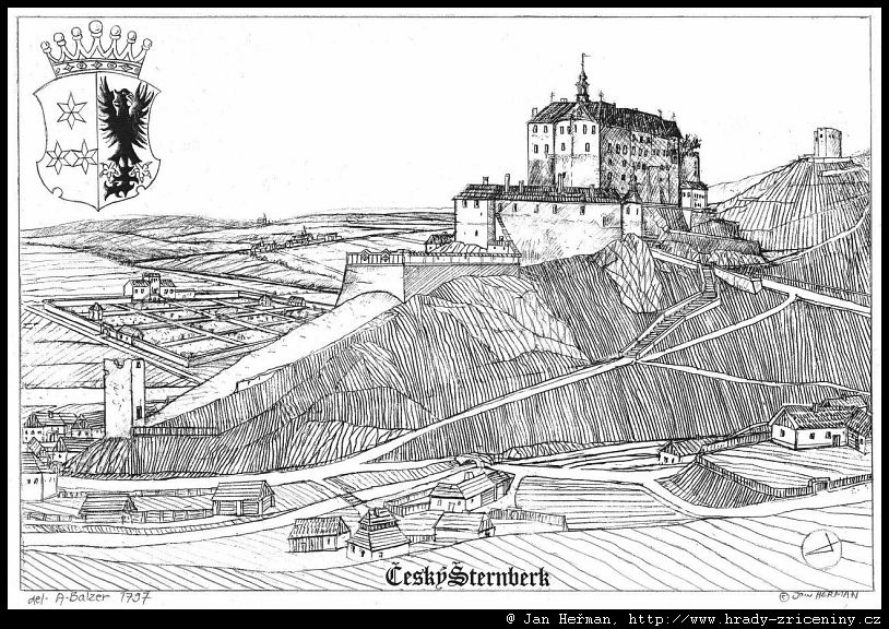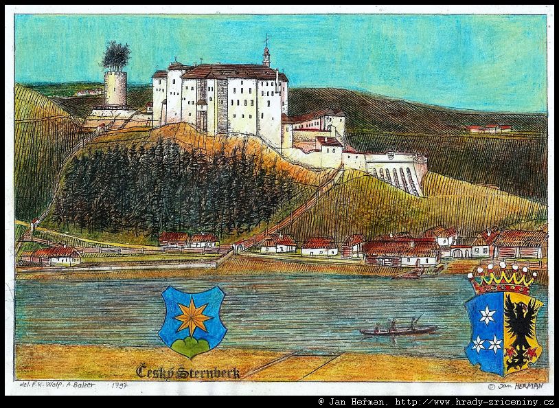 Český Šternberk od JV podle A. Balzera 1797, K. Postla 1803 |