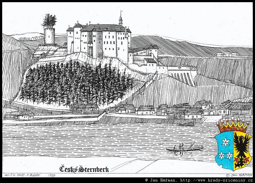 Český Šternberk od V podle F. K. Wolfa, A. Balzera 1797 |