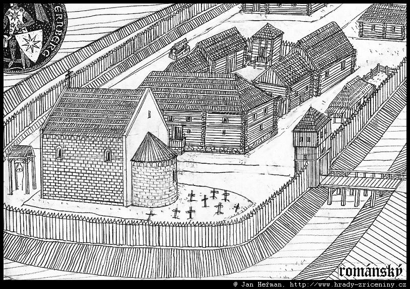 Radomyšl románský dvorec ve 12. stol. podle F. Kašičky, B. Nechvátala |