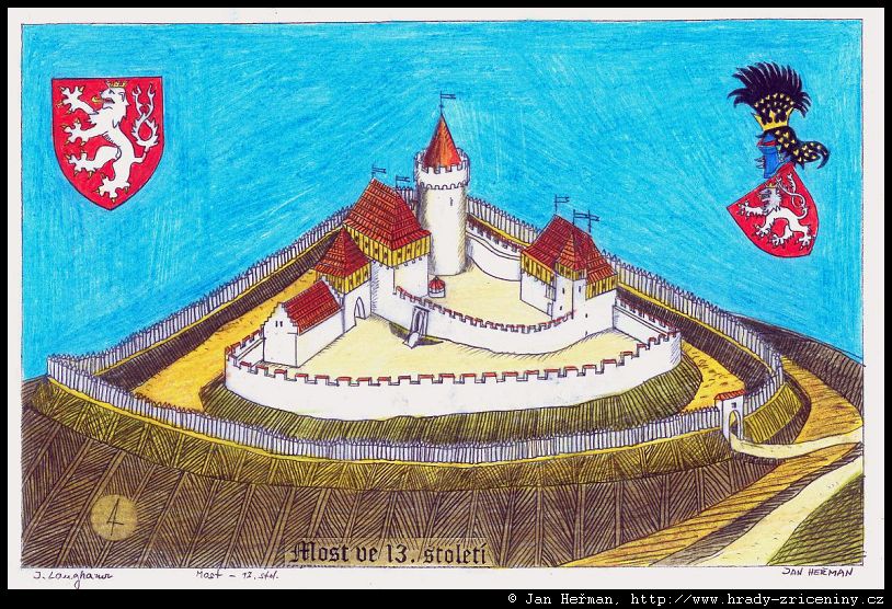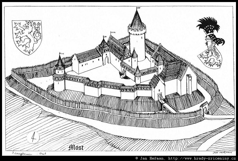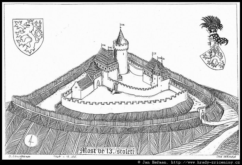 Hněvín – Most – kresby Jana Heřmana podle rekonstrukcí