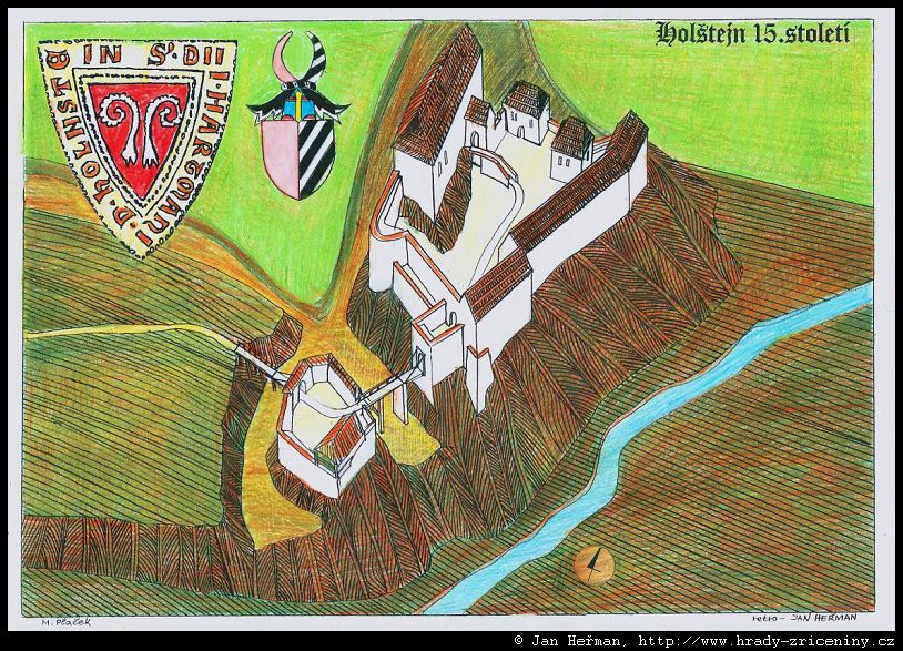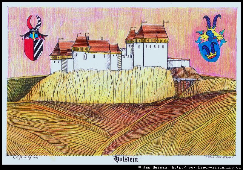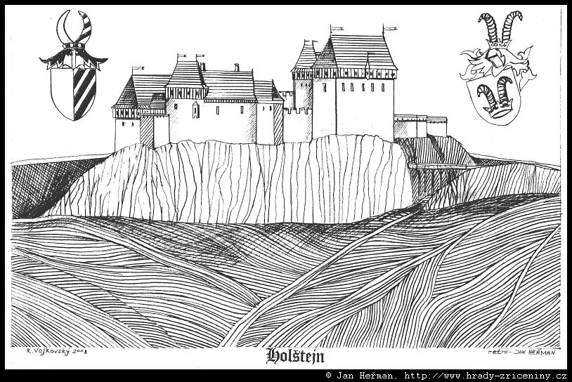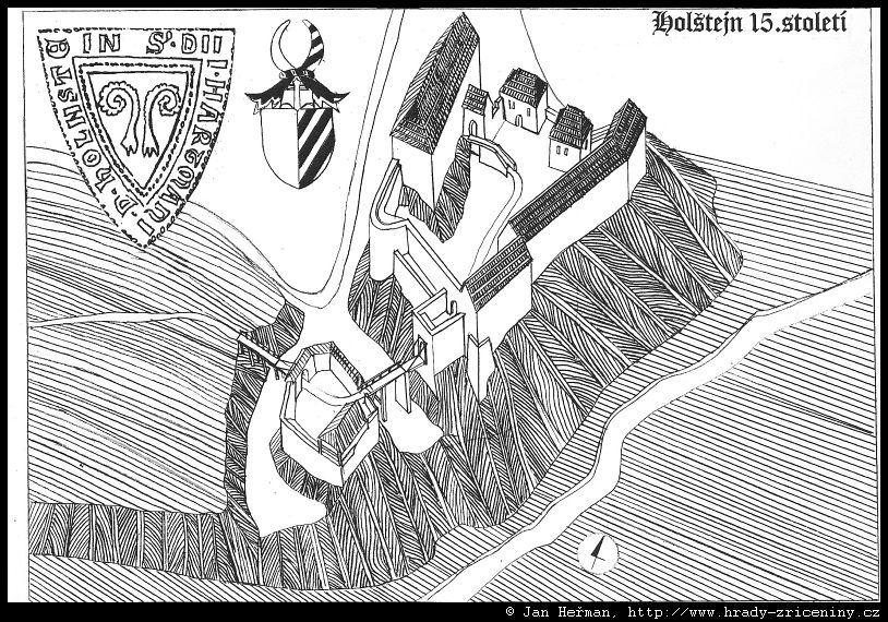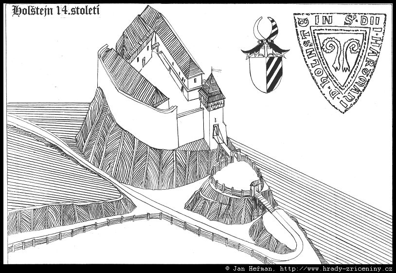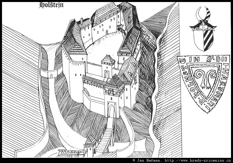 Holštejn – kresby Jana Heřmana podle rekonstrukcí