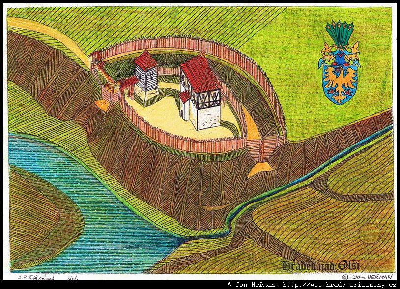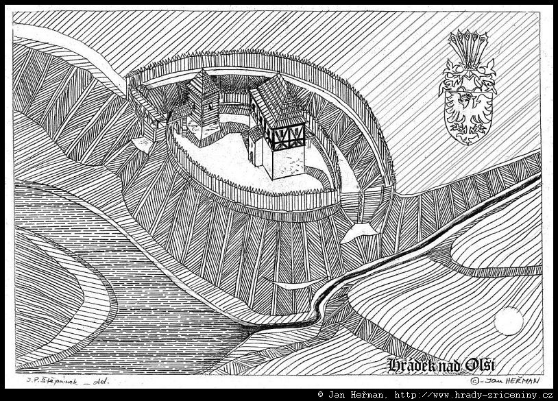 Hrádek nad Olší kresby Jana Heřmana podle rekonstrukcí