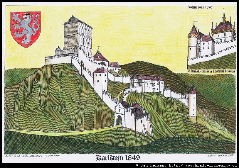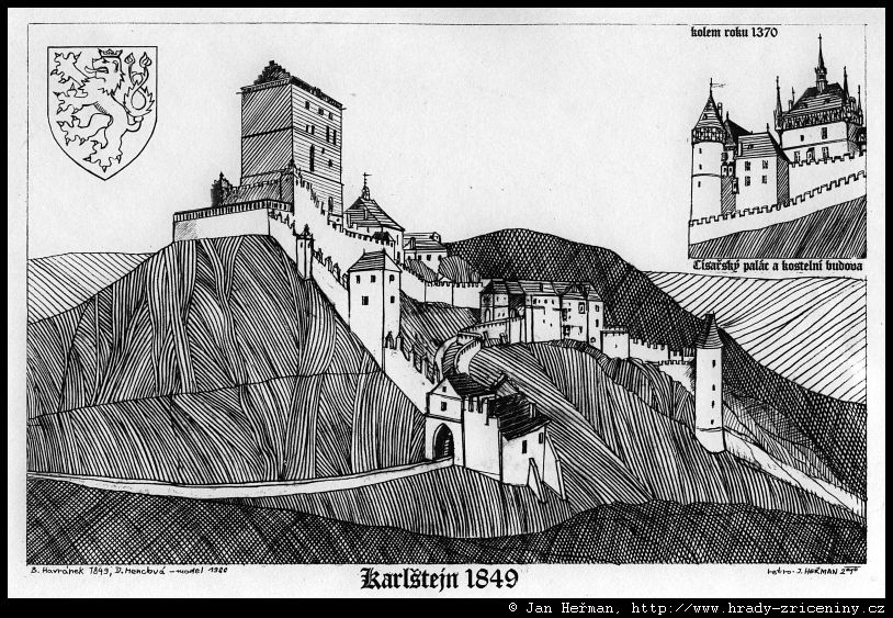 Karlstejn podle vyobrazeni B. Havranka 1849 a D. Menclove