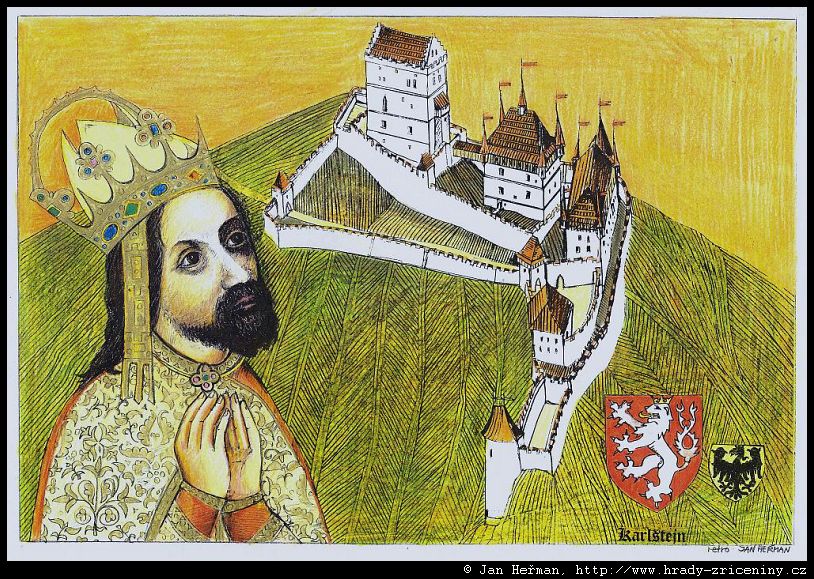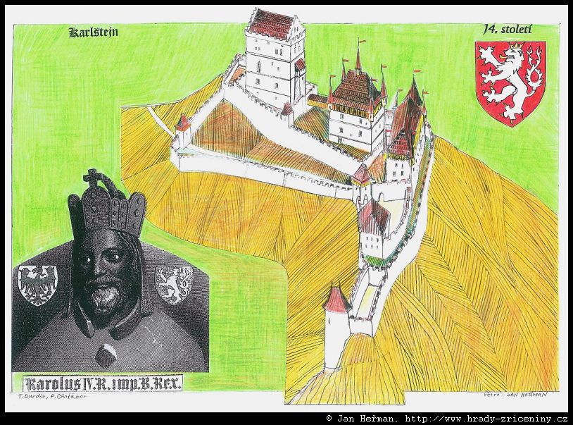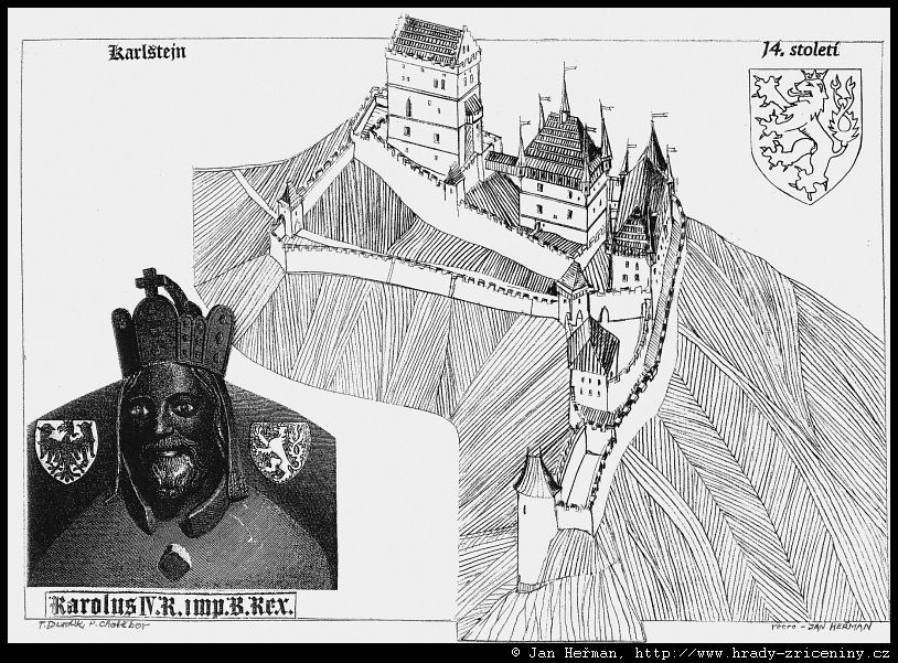 Karlštejn – kresby Jana Heřmana podle rekonstrukcí