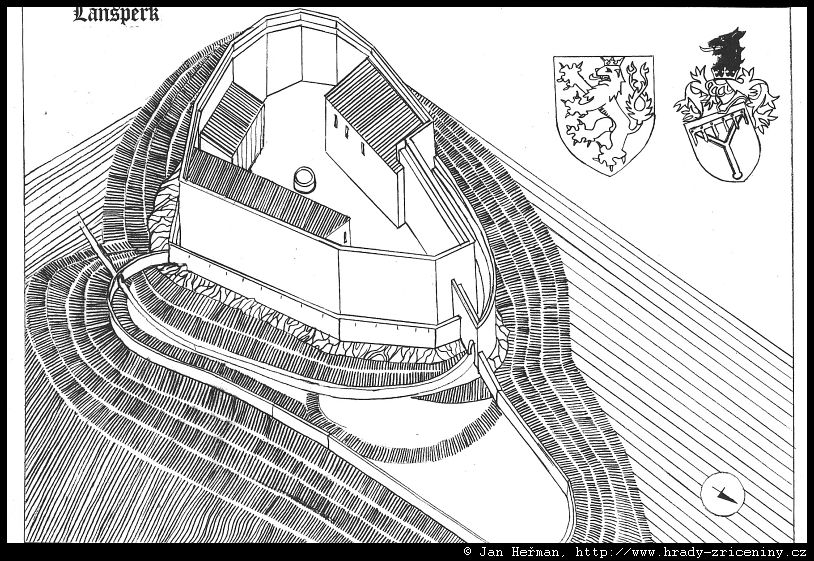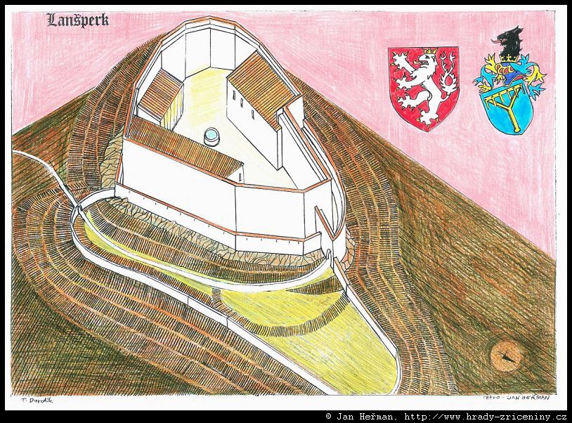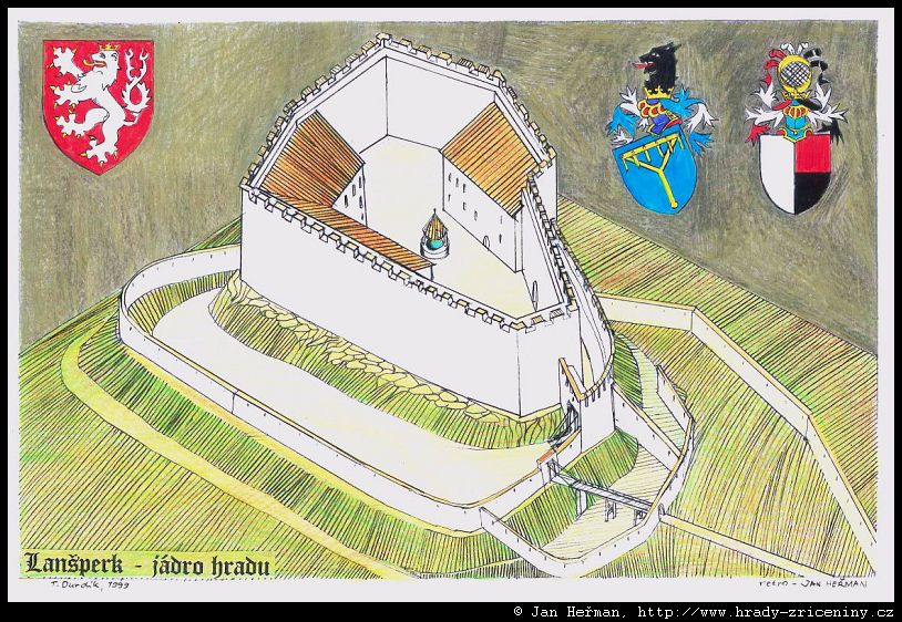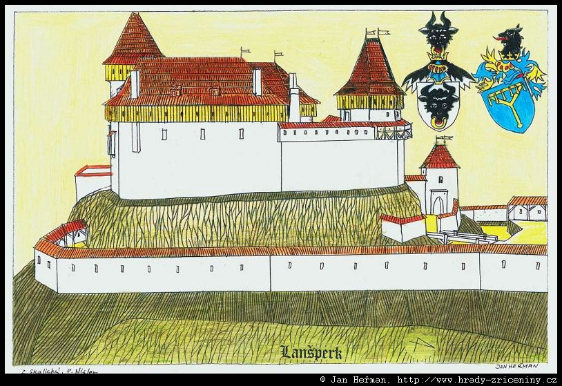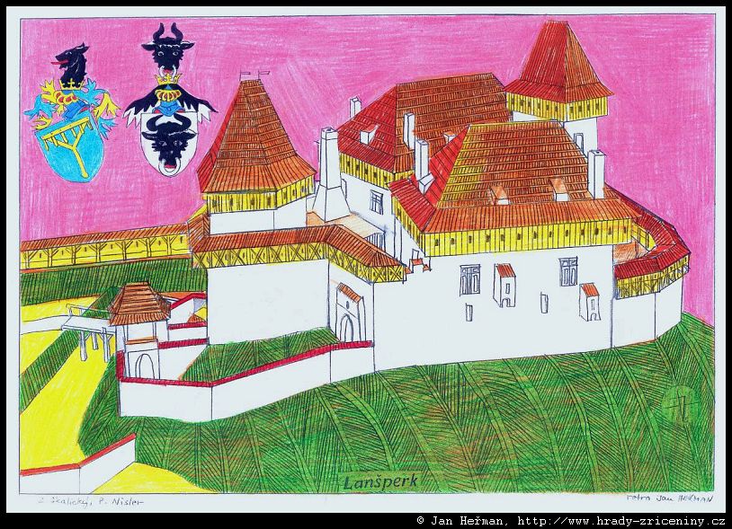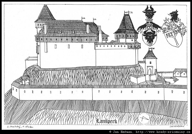Lanšperk – kresby Jana Heřmana podle rekonstrukcí
