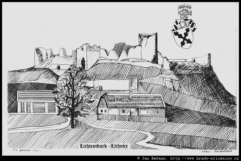 Lichnice podle vyobrazení F. A. Hebera 1841 |