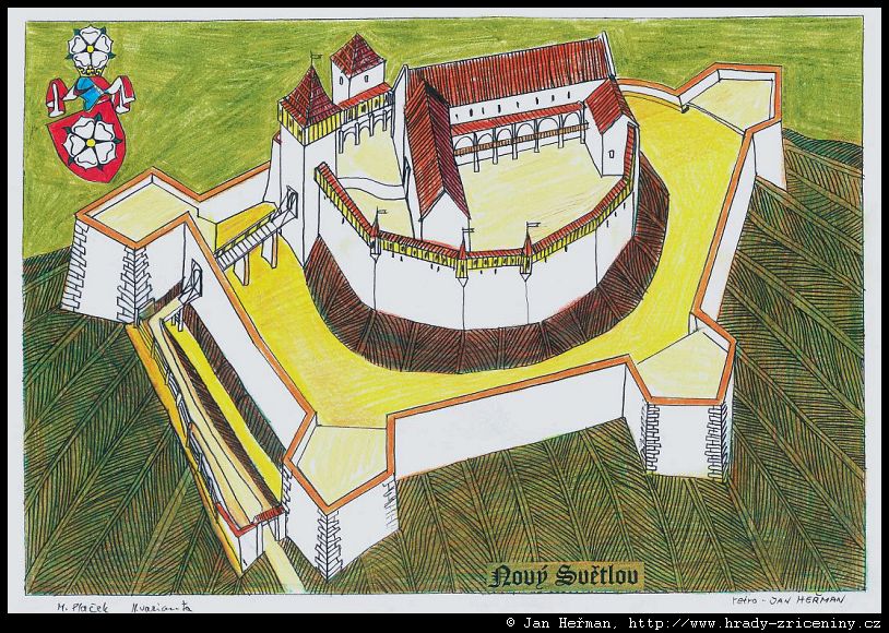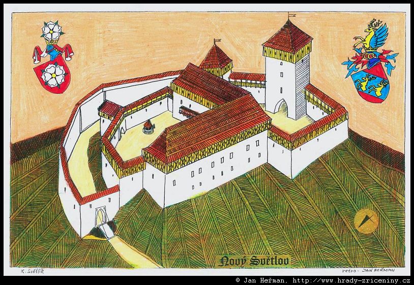 Nový Světlov kresby Jana Heřmana podle rekonstrukcí