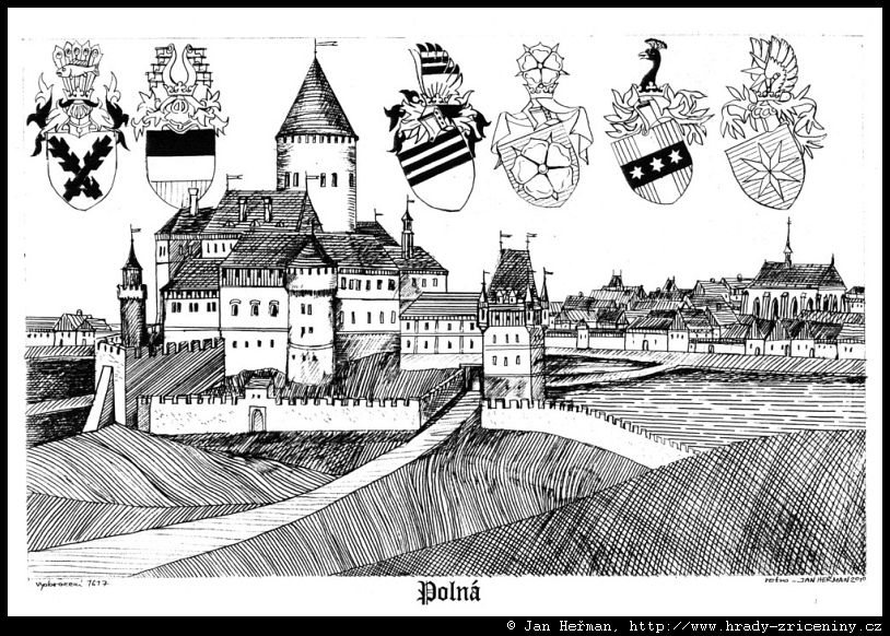 Polná – kresby Jana Heřmana podle rekonstrukcí