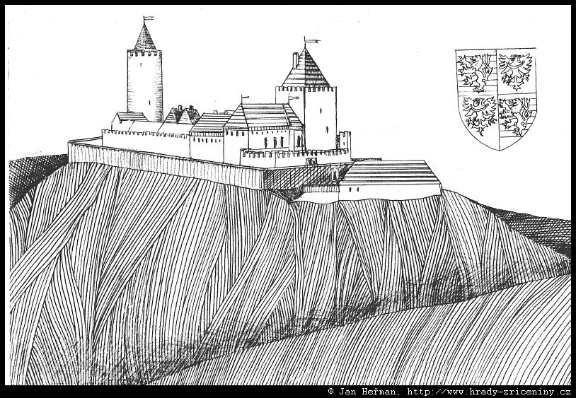 Špilberk kresby Jana Heřmana podle rekonstrukcí