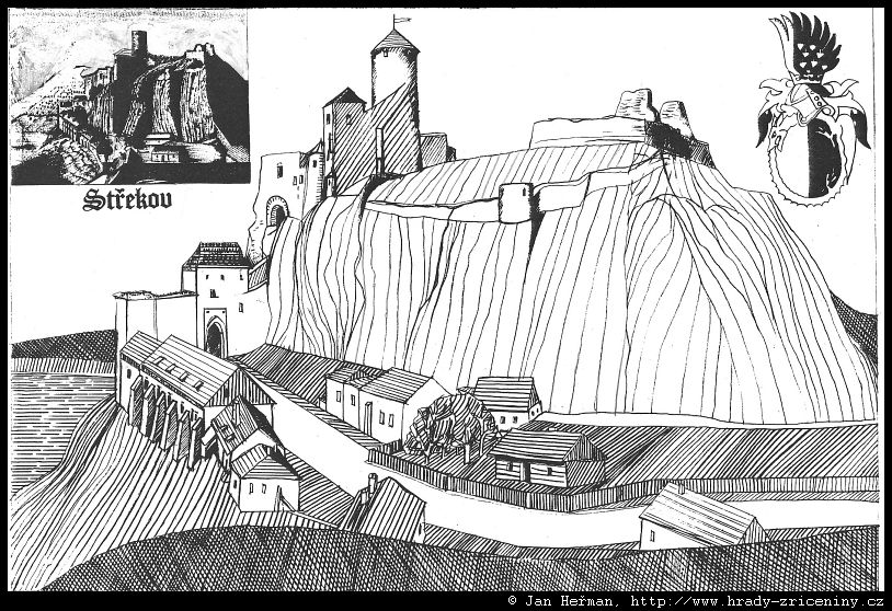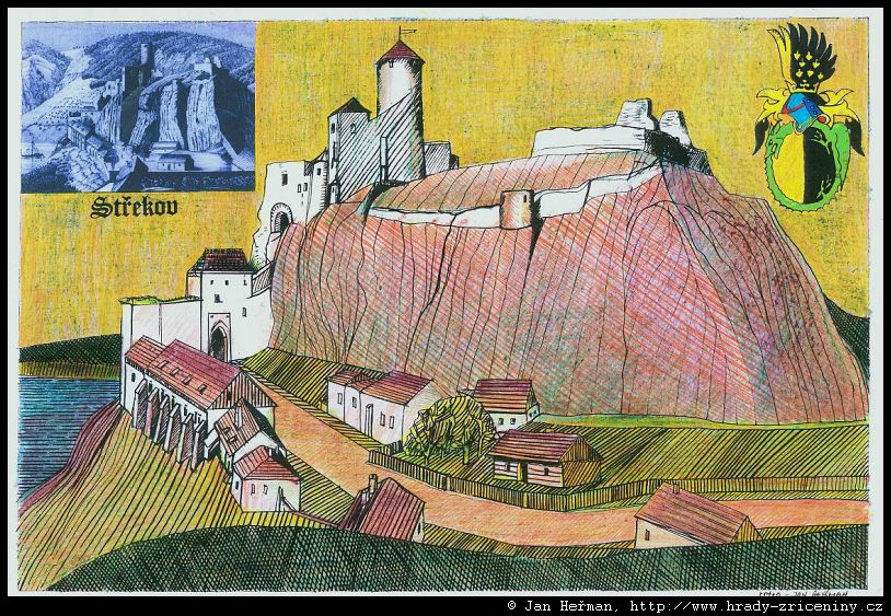 Střekov – kresby Jana Heřmana podle rekonstrukcí