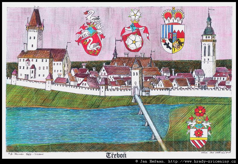 Třeboň kresby Jana Heřmana podle rekonstrukcí
