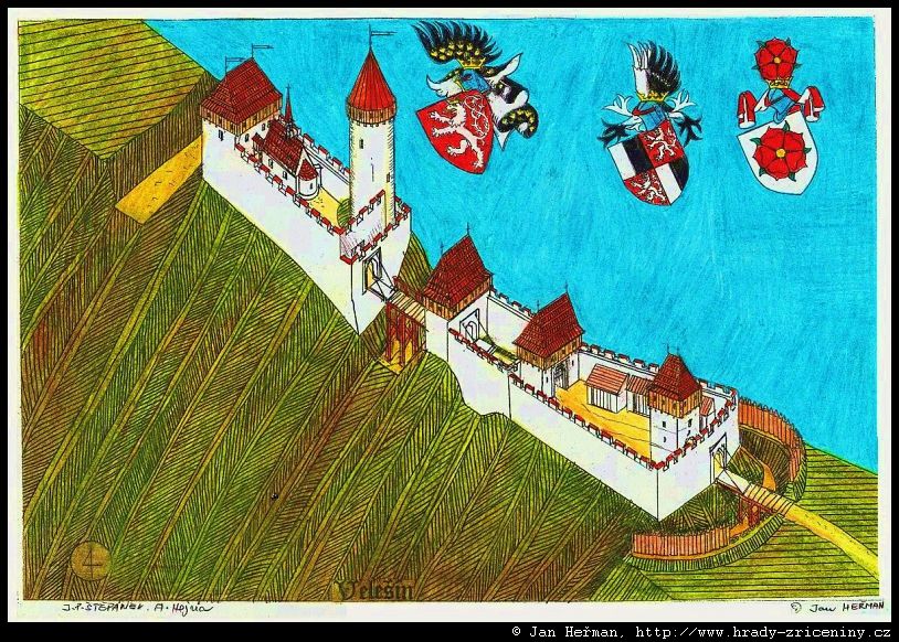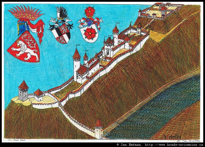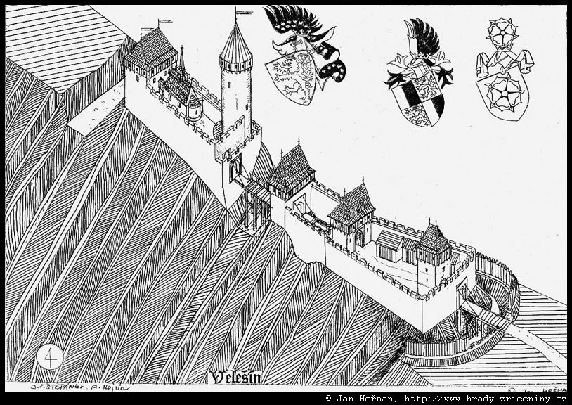 Velešín – kresby Jana Heřmana podle rekonstrukcí