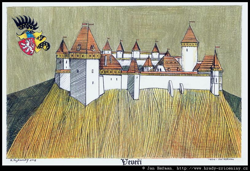 Veveří – kresby Jana Heřmana podle rekonstrukcí