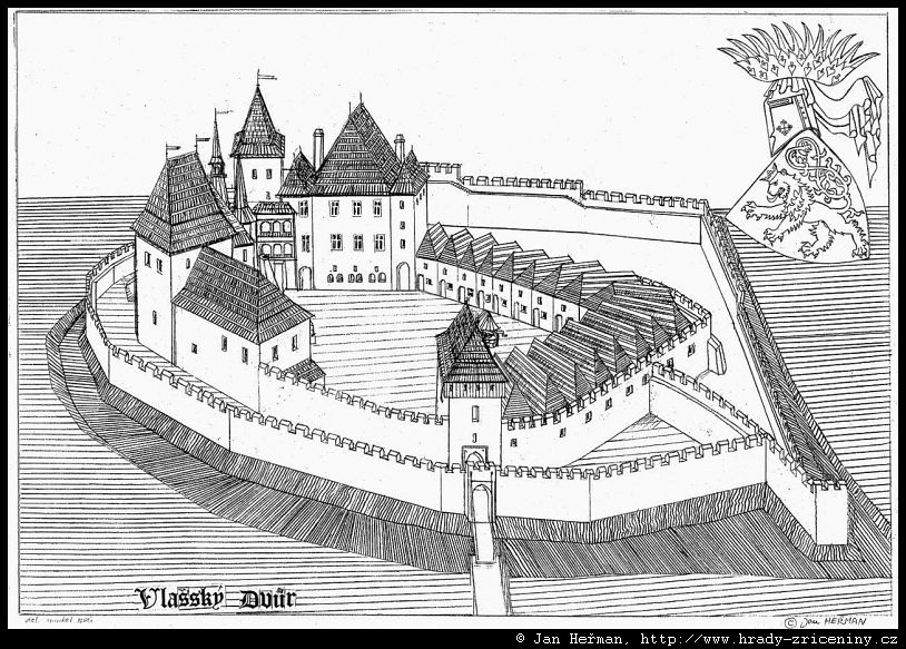 Vlašský Dvůr – kresby Jana Heřmana podle rekonstrukcí