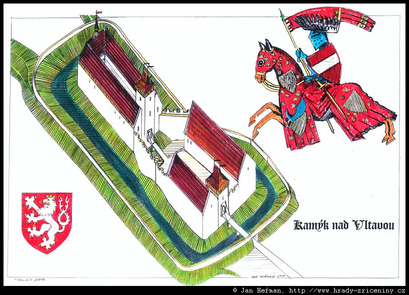 Vrškamýk – Kamýk nad Vltavou – kresby Jana Heřmana podle rekonstrukcí