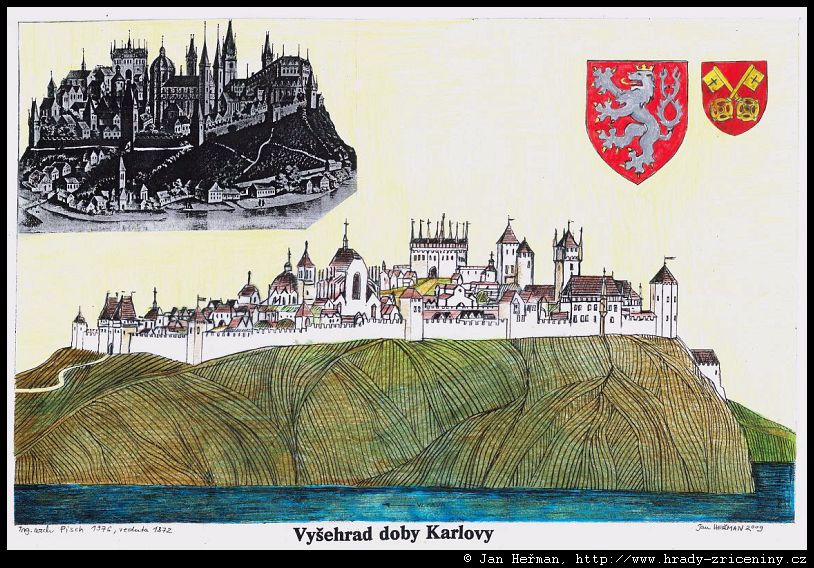 Vyšehrad kresby Jana Heřmana podle rekonstrukcí