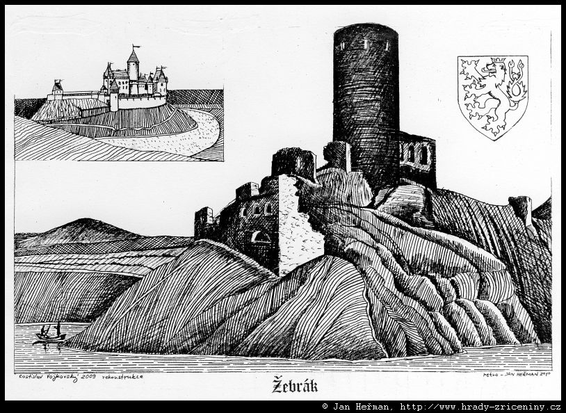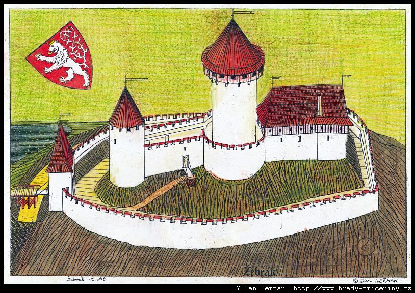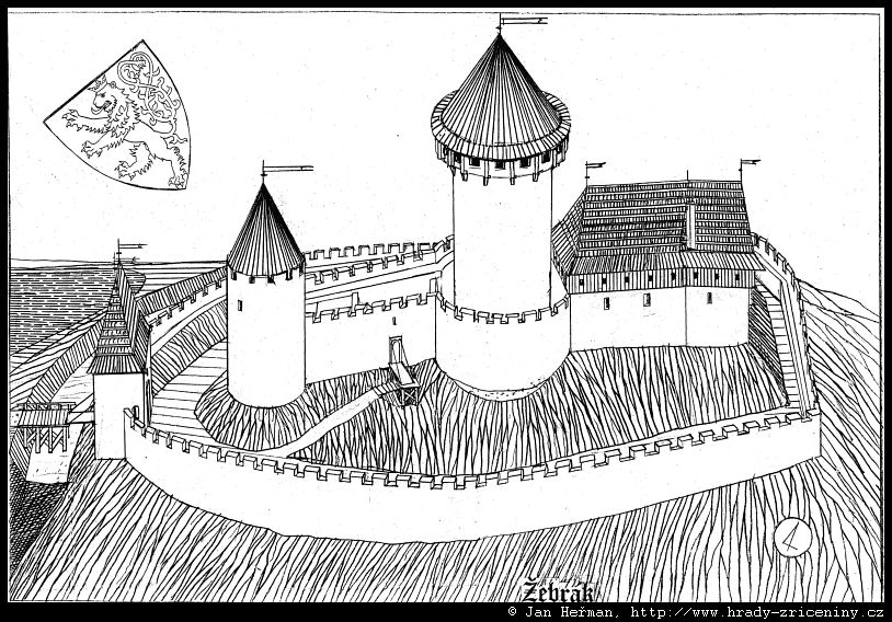 Žebrák – kresby Jana Heřmana podle rekonstrukcí
