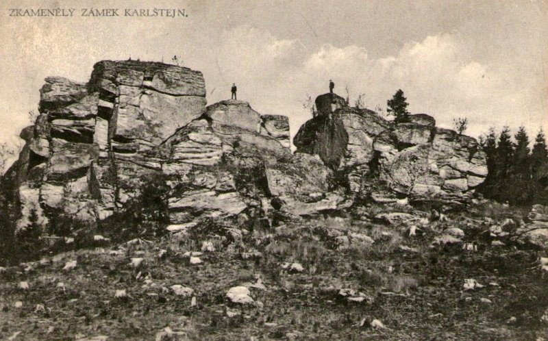 Zkamenělý zámek Karlštejn pohlednice (1925) |