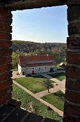 Klášter Hradiště budova ObÚ z klášterní zahrady (2019) |