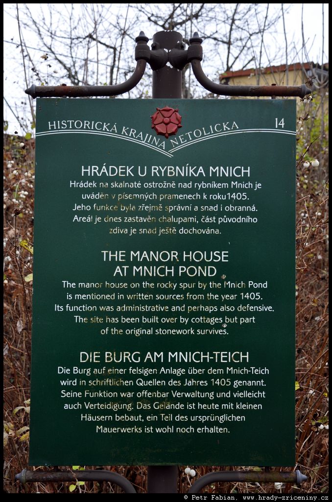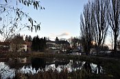 Netolice Hrádek pohled z hráze rybníka Mnich (2019) |