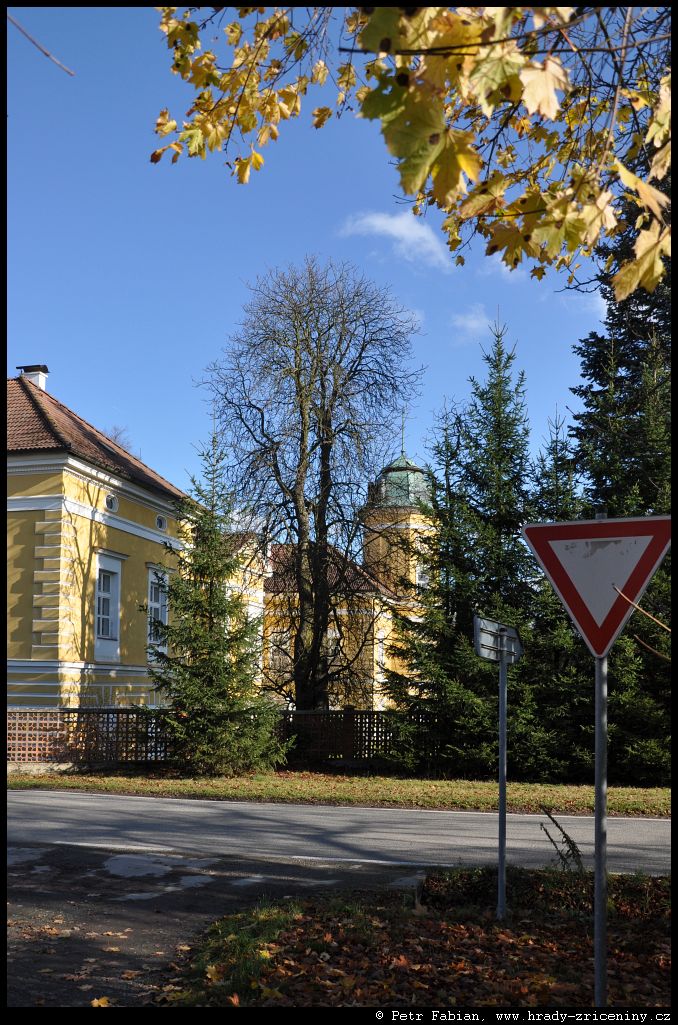 Neustupov zámecké křídlo s pozůstatkem tvrze od kostela (2019) |