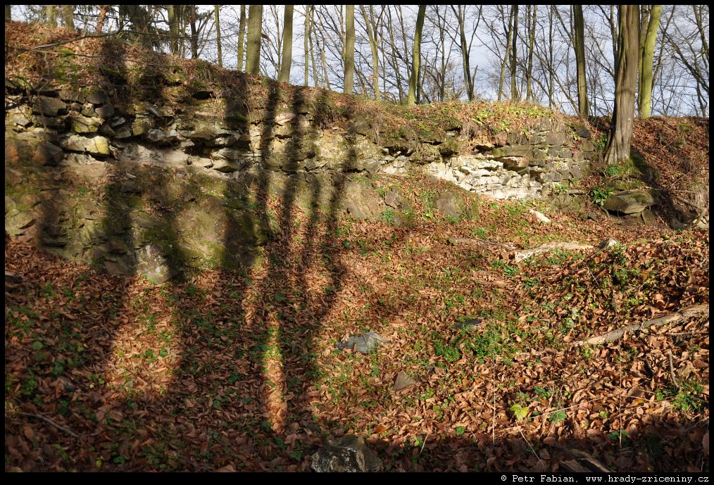 Hrádek u Ostrova svah jádra nad příkopem na severní straně (2019) |